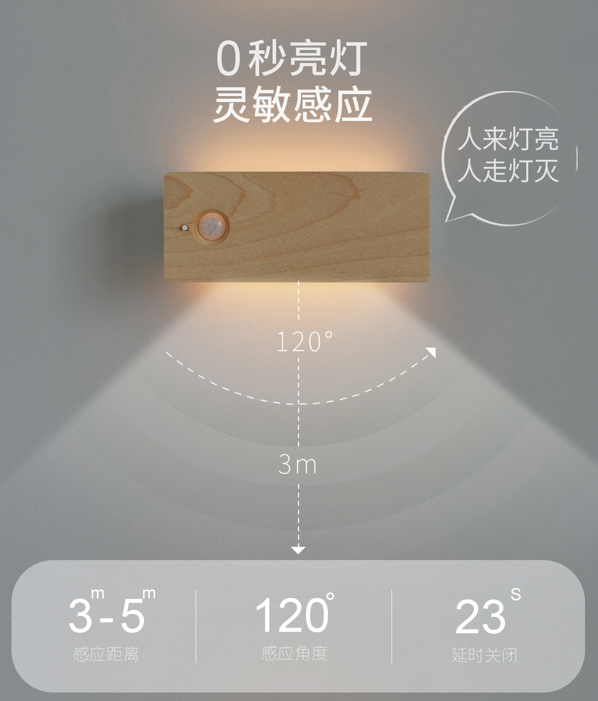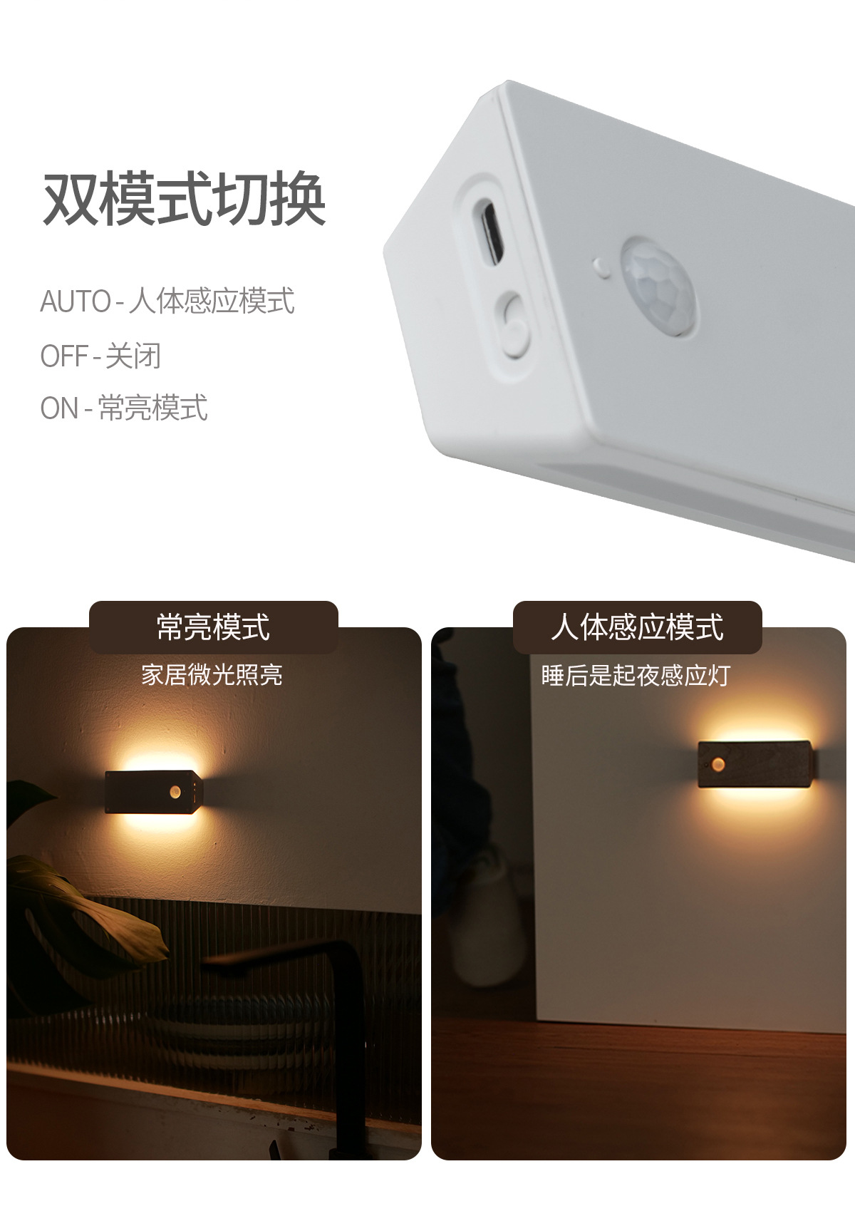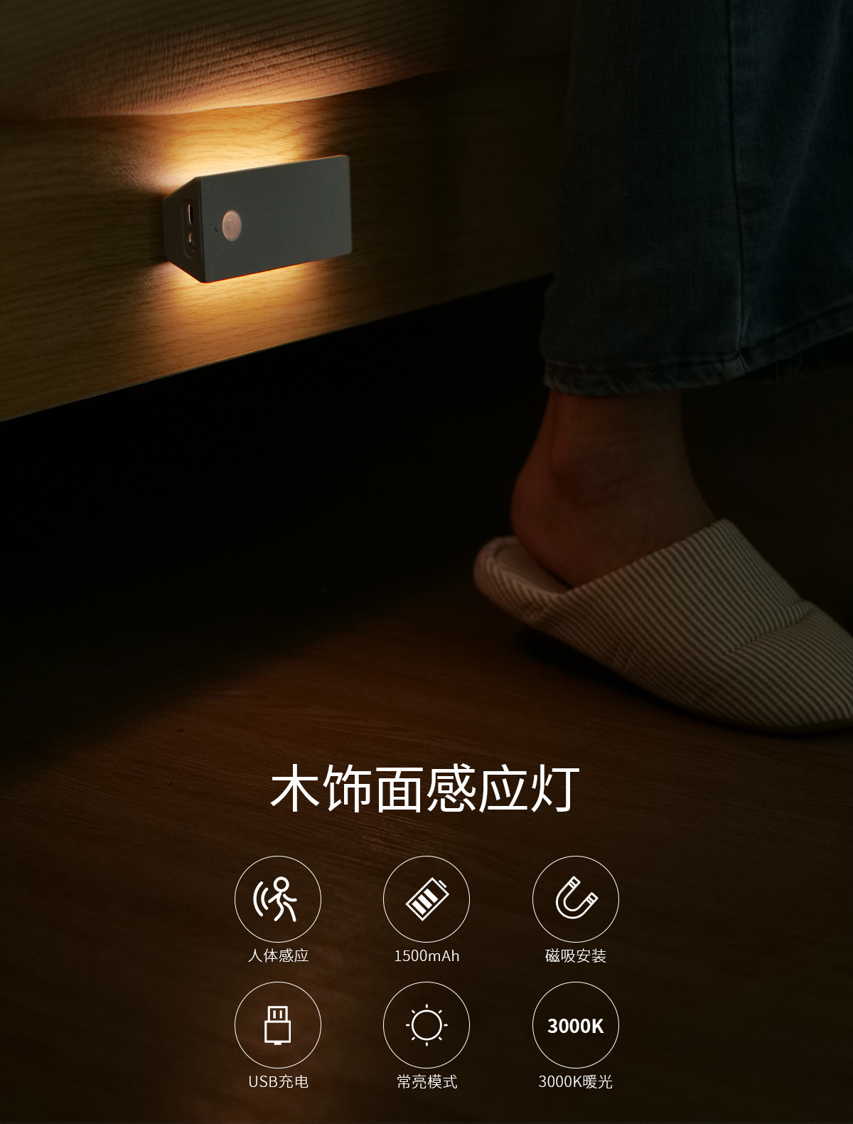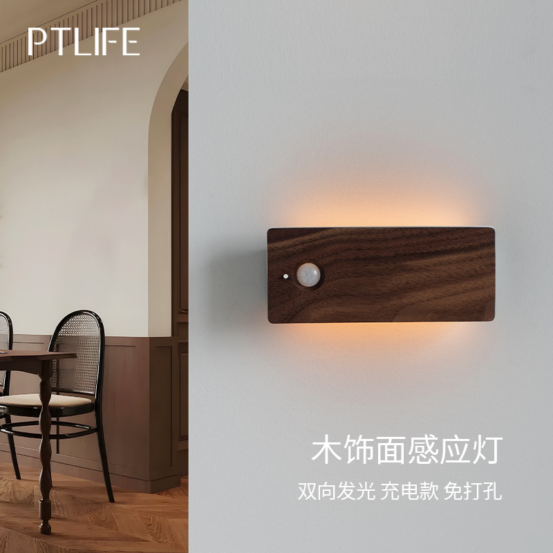 무선 충전식 LED 센서 벽등, 침실 침대 옆 계단 발광등, 복도 캐비닛 조명, 원목