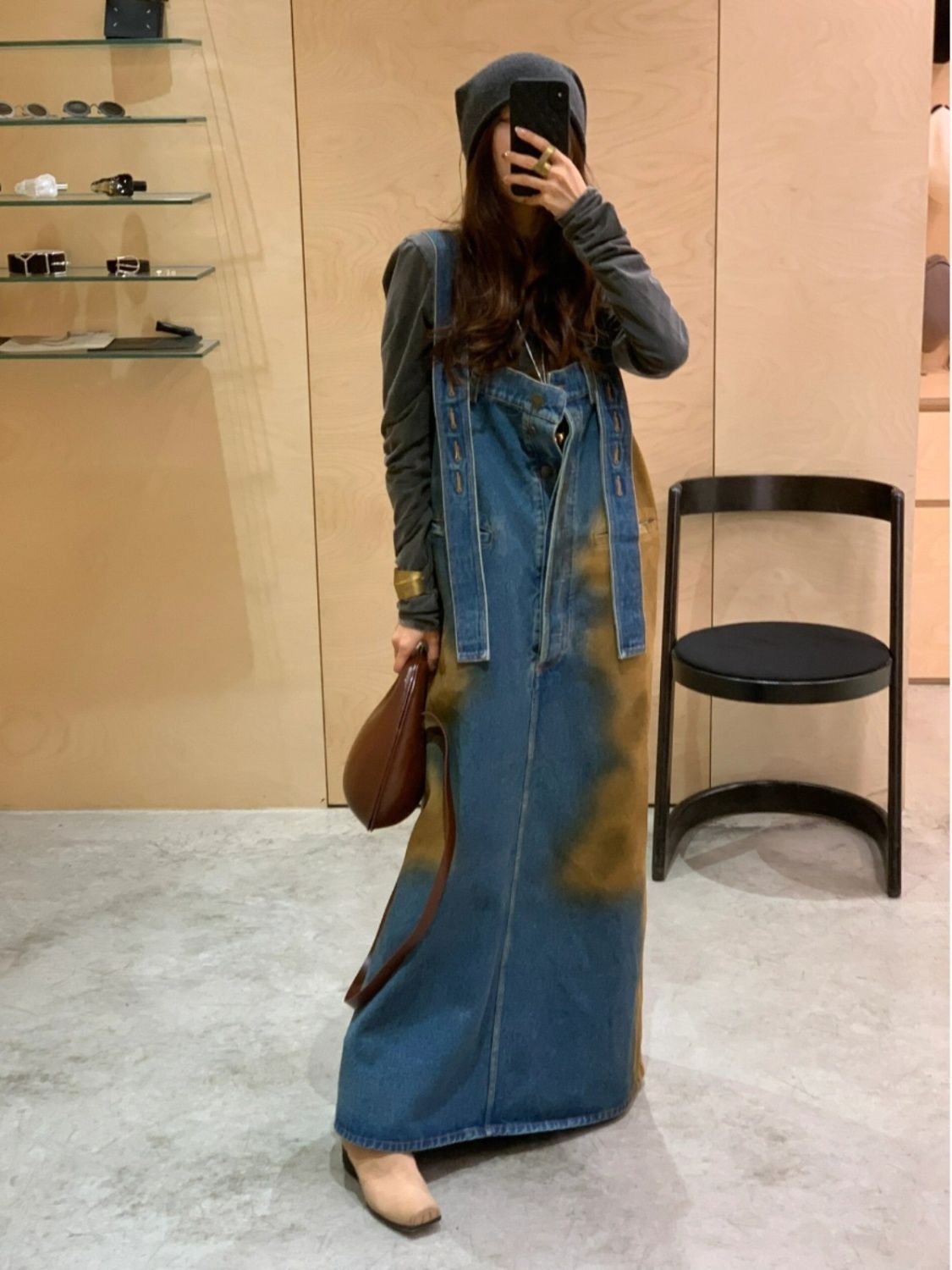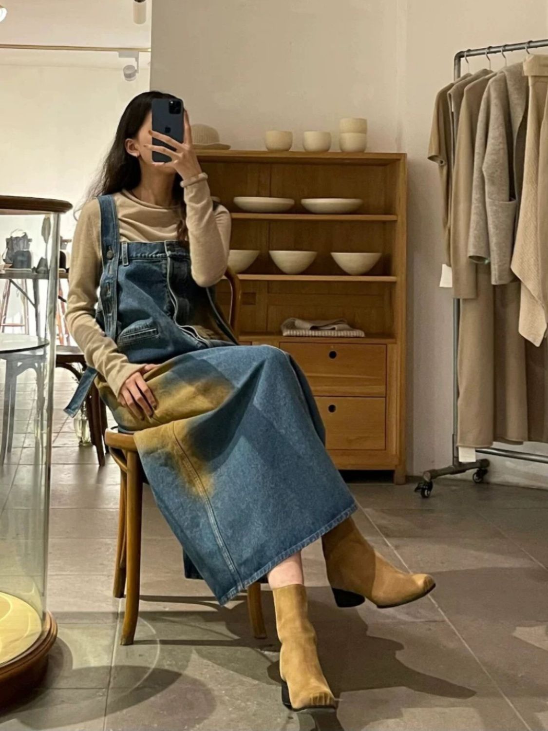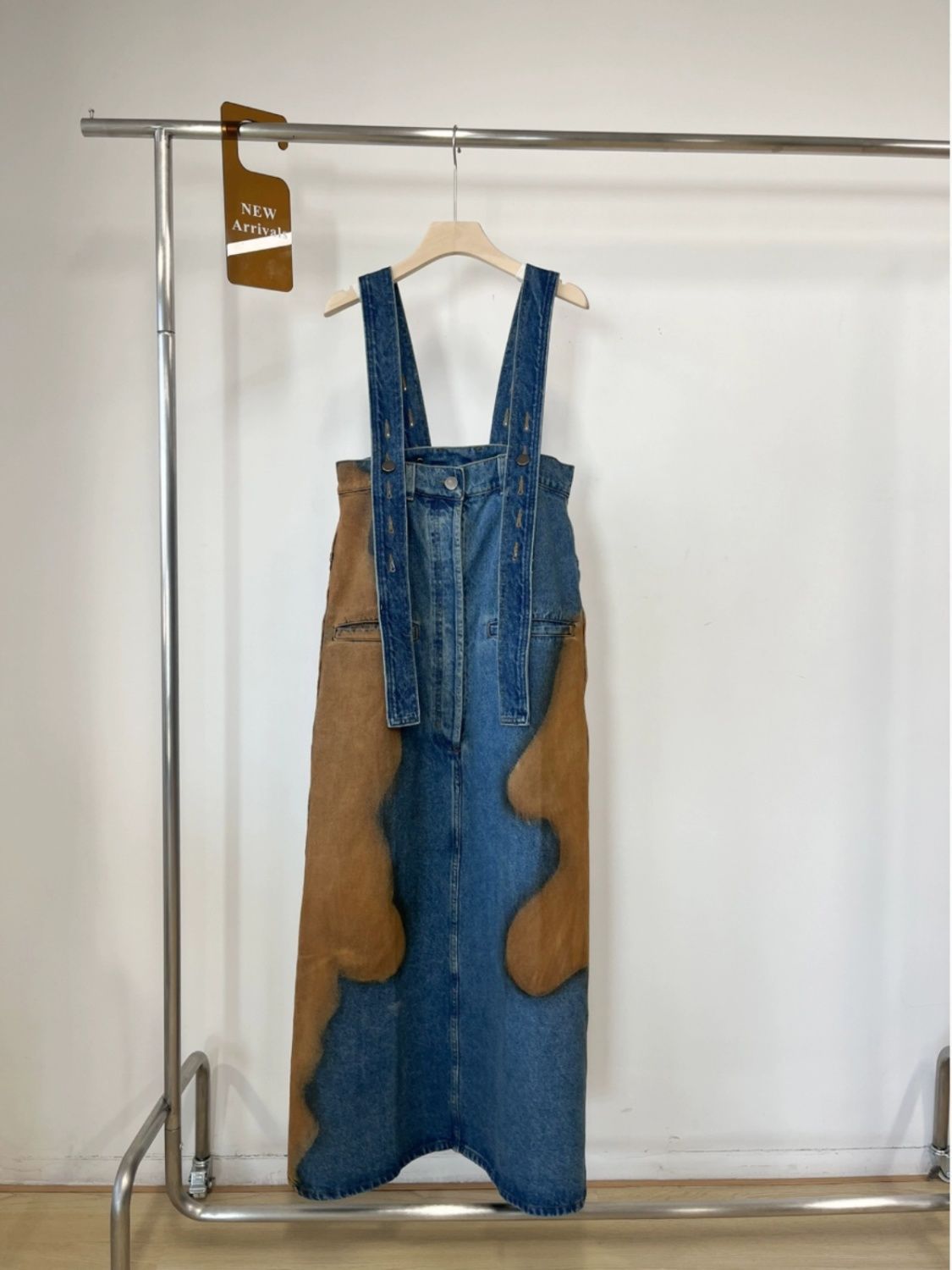 가을 2024 미국 복고풍 세척 오래된 고민 스플래시 잉크 스프레이 염색 조절 기질 데님 스트랩 원피스스토어 가기