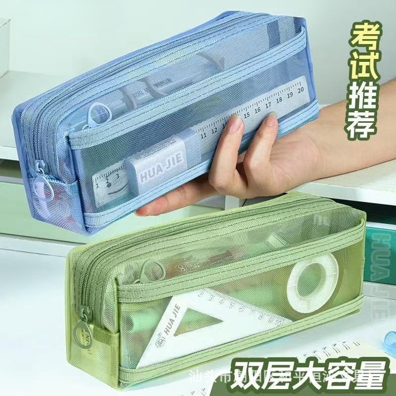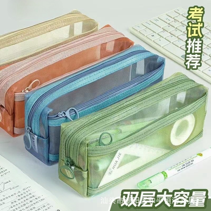 연필 가방 투명 메쉬 학생 시험 특수 문구 가방 어린이 연필 가방 2 층 3 차원 대용량 문구 상자