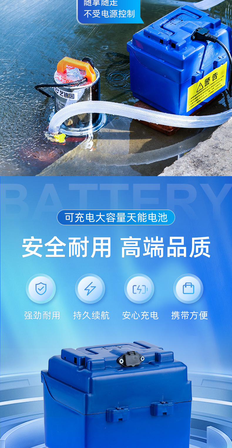 • 12AH Tianneng 배터리 + 50m 옥스포드 튜브가 장착된 12V120W 수중 펌프
