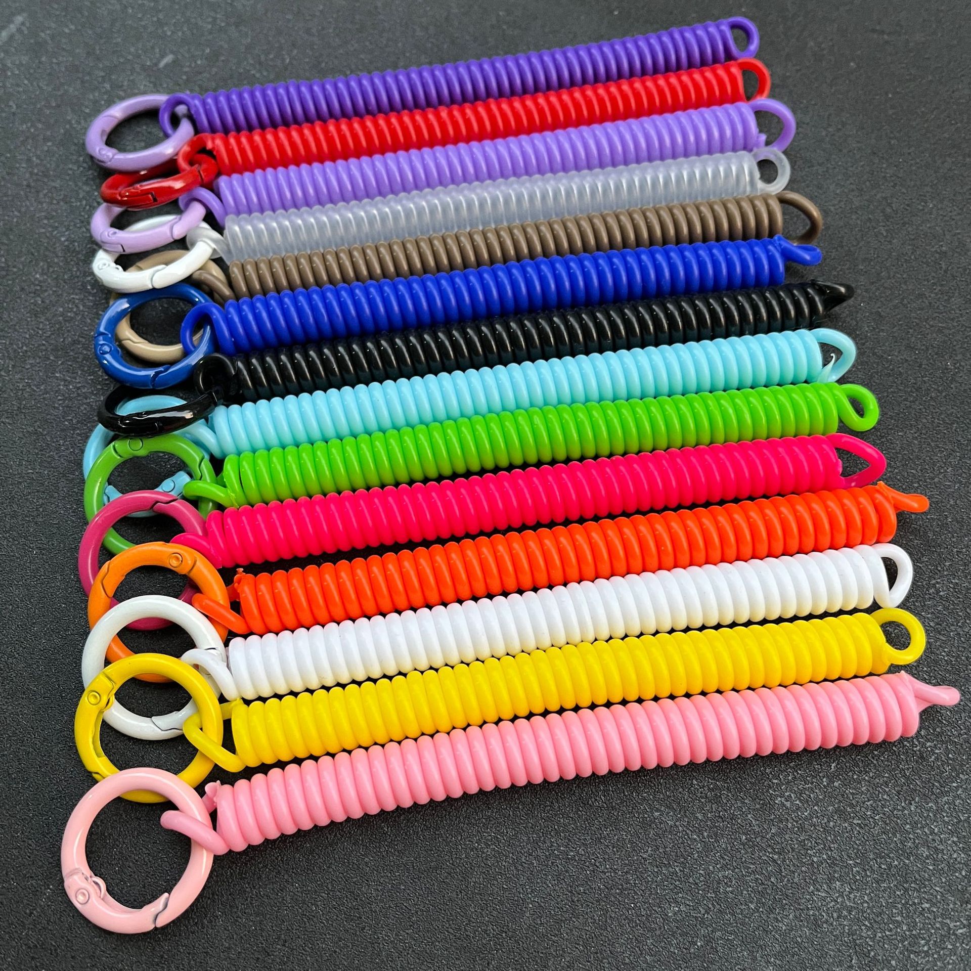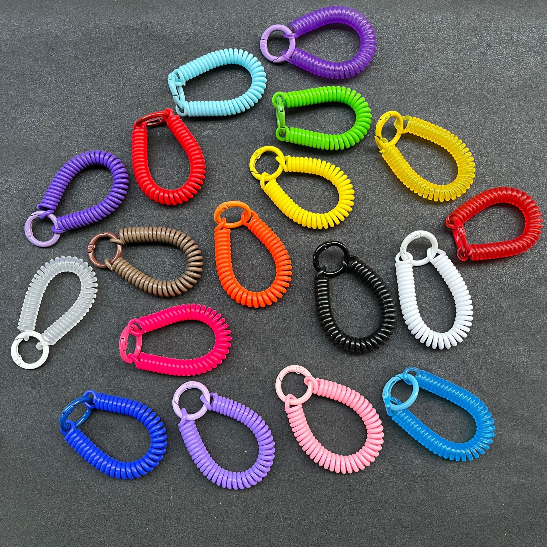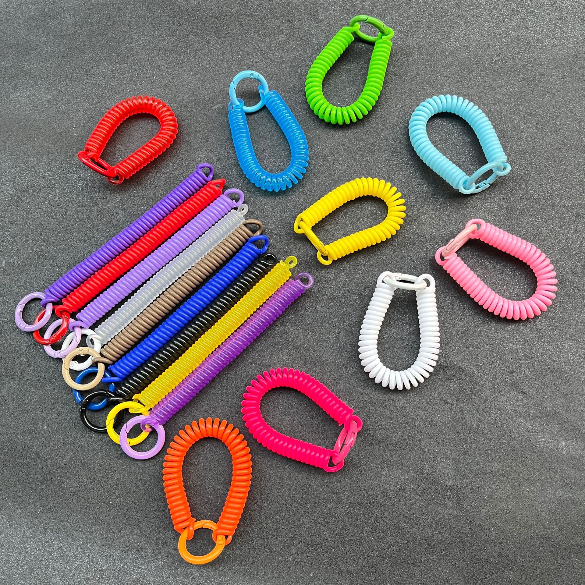 투명한 컬러 플라스틱 봄 밧줄 매달린 버클 학생 Schoolbag 식사 카드 홀더 매달려 장식 개폐식 방지 키 체인