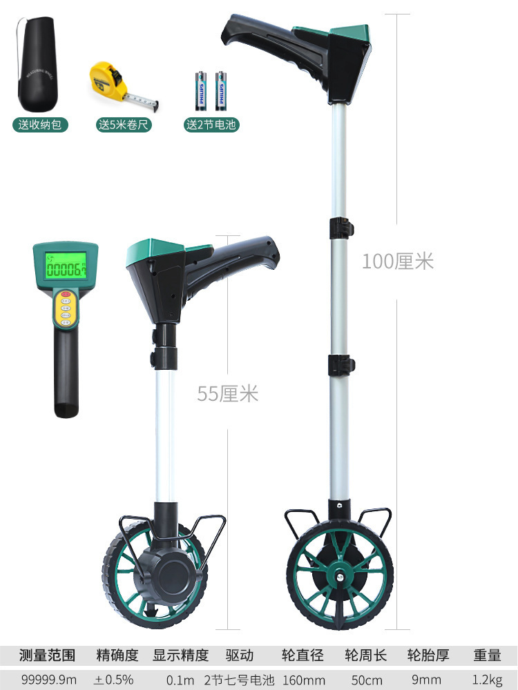 • 충전 세트 + 배낭 + 5m 줄자가 포함된 디지털 디스플레이 소형 휠