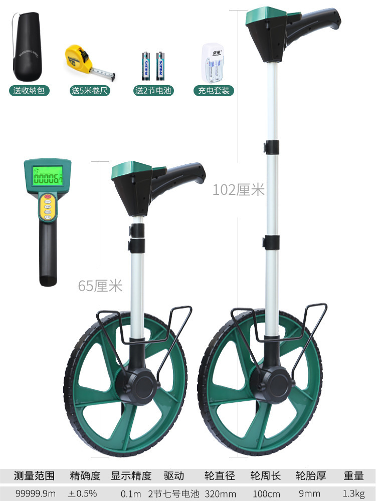 • 충전 세트 + 배낭 + 5m 줄자가 포함된 디지털 디스플레이 대형 휠