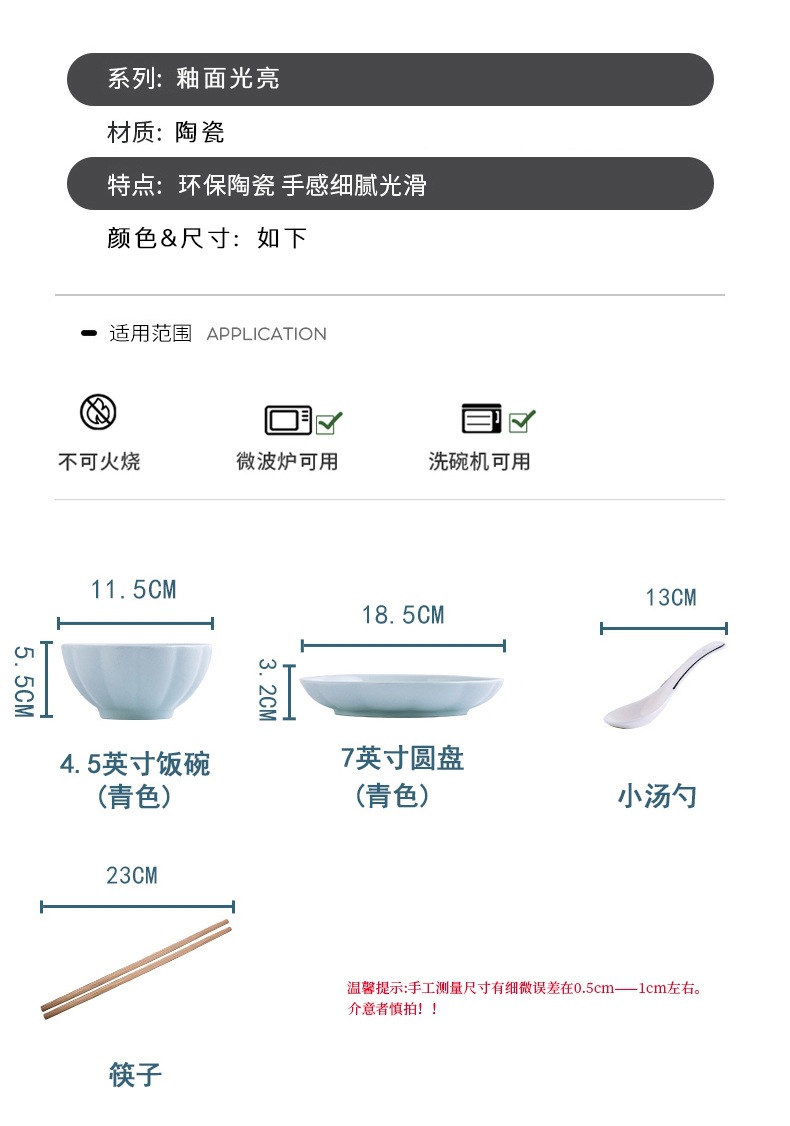 고온 도자기 언더 글레이즈 세라믹 식기 8 피스 세트 2 그릇 2 접시 2 스푼 2 젓가락 세트 가정 요리스토어 가기