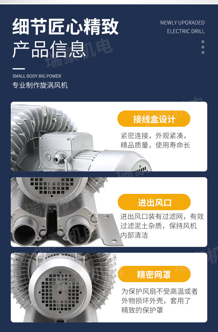 고압 소용돌이 원심 팬 물고기 연못 산소 펌프 고출력 산업 먼지 제거 흡입 진공 뿌리 송풍기