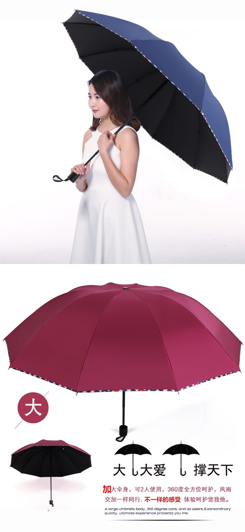 • 버건디-비닐 강화 업그레이드 모델 (12본 3인용 우산)
