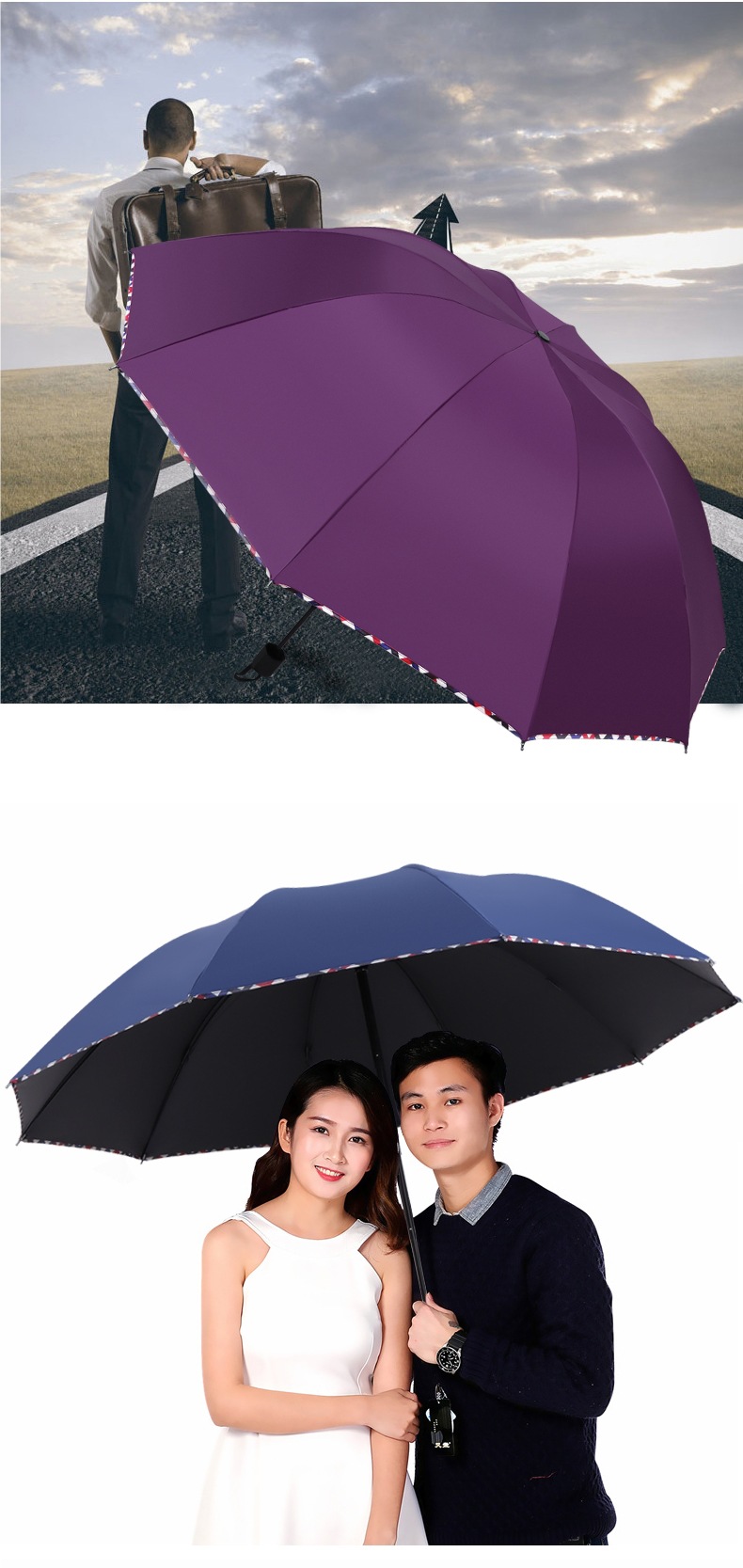 • 보라색-비닐 강화 업그레이드 모델(12본 3인용 우산)