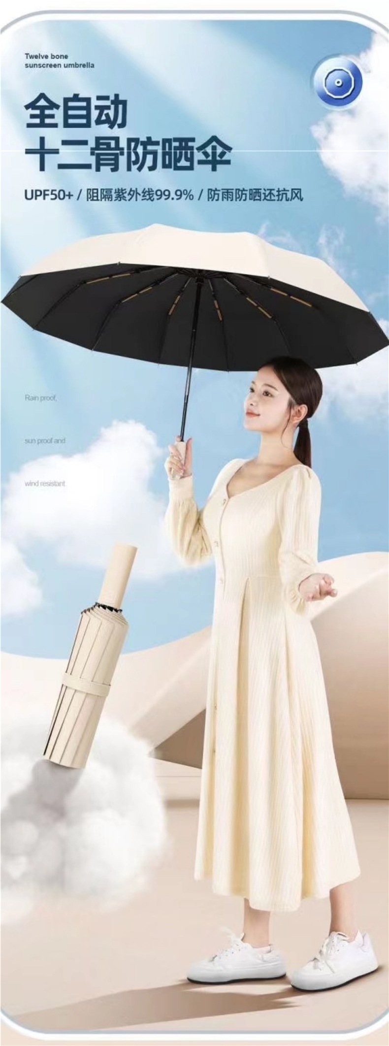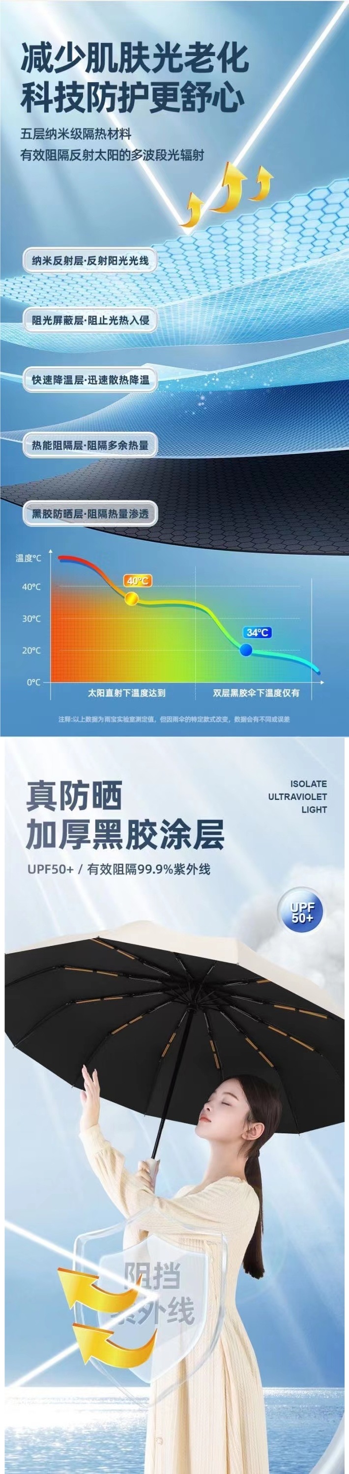 접이식 자동 우산 선 스크린 대형 우산 맑고 비 이중 목적 햇빛 자외선 차단 로고 블랙 고무 우산