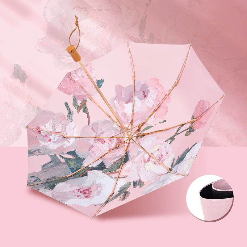 • 수동 비닐 양면 이중 꽃 - 모란 가루(2인용) 단단한 나무 손잡이