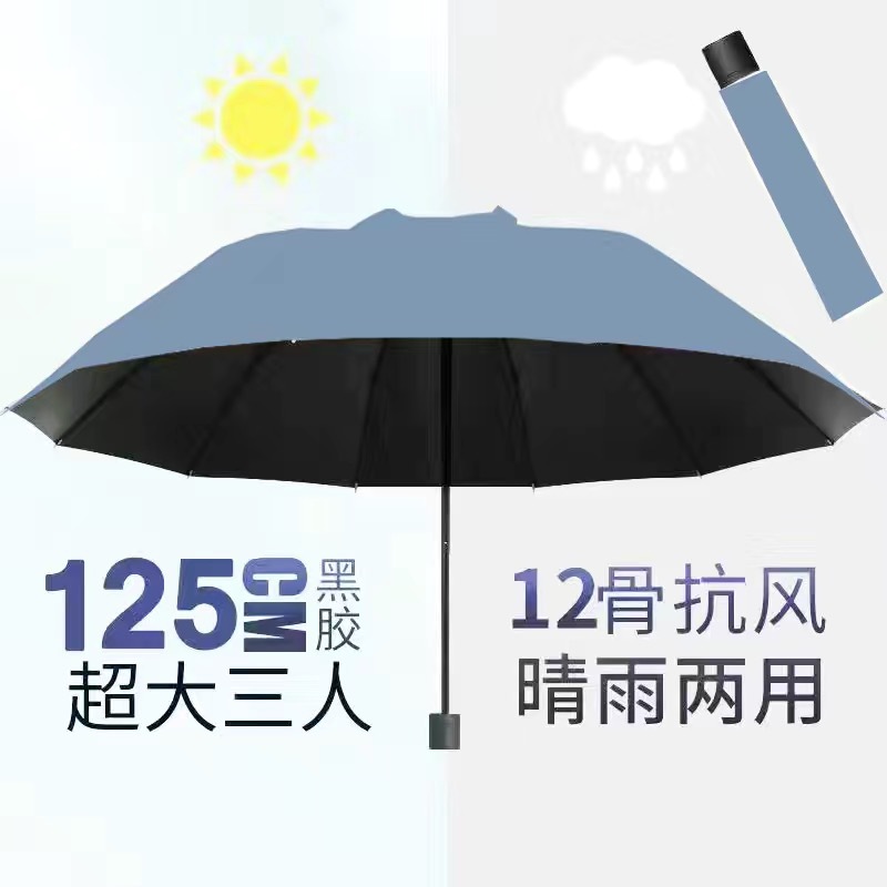 • 12본 수동모델 - 블랙 (우산 아래 126CM, 3인용)