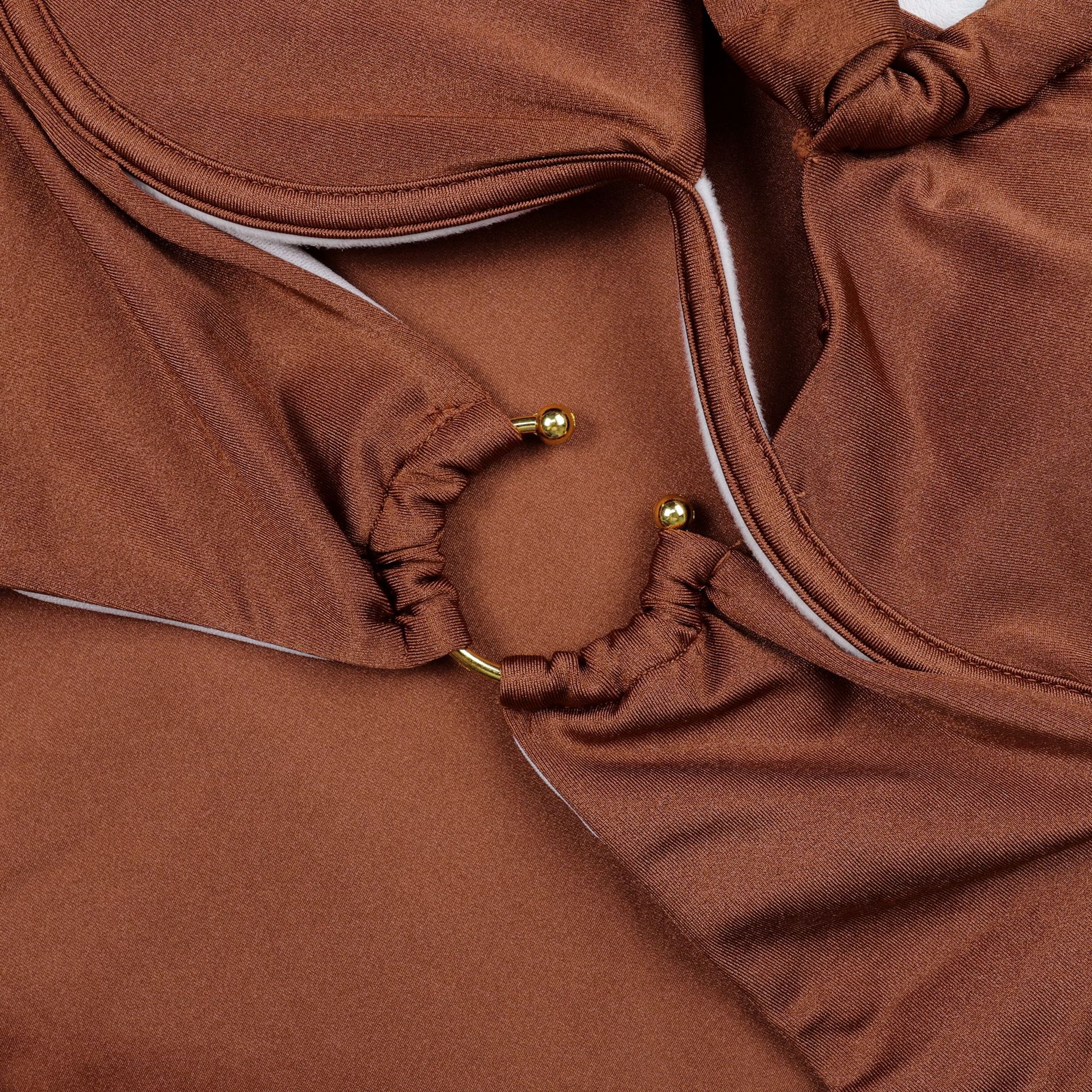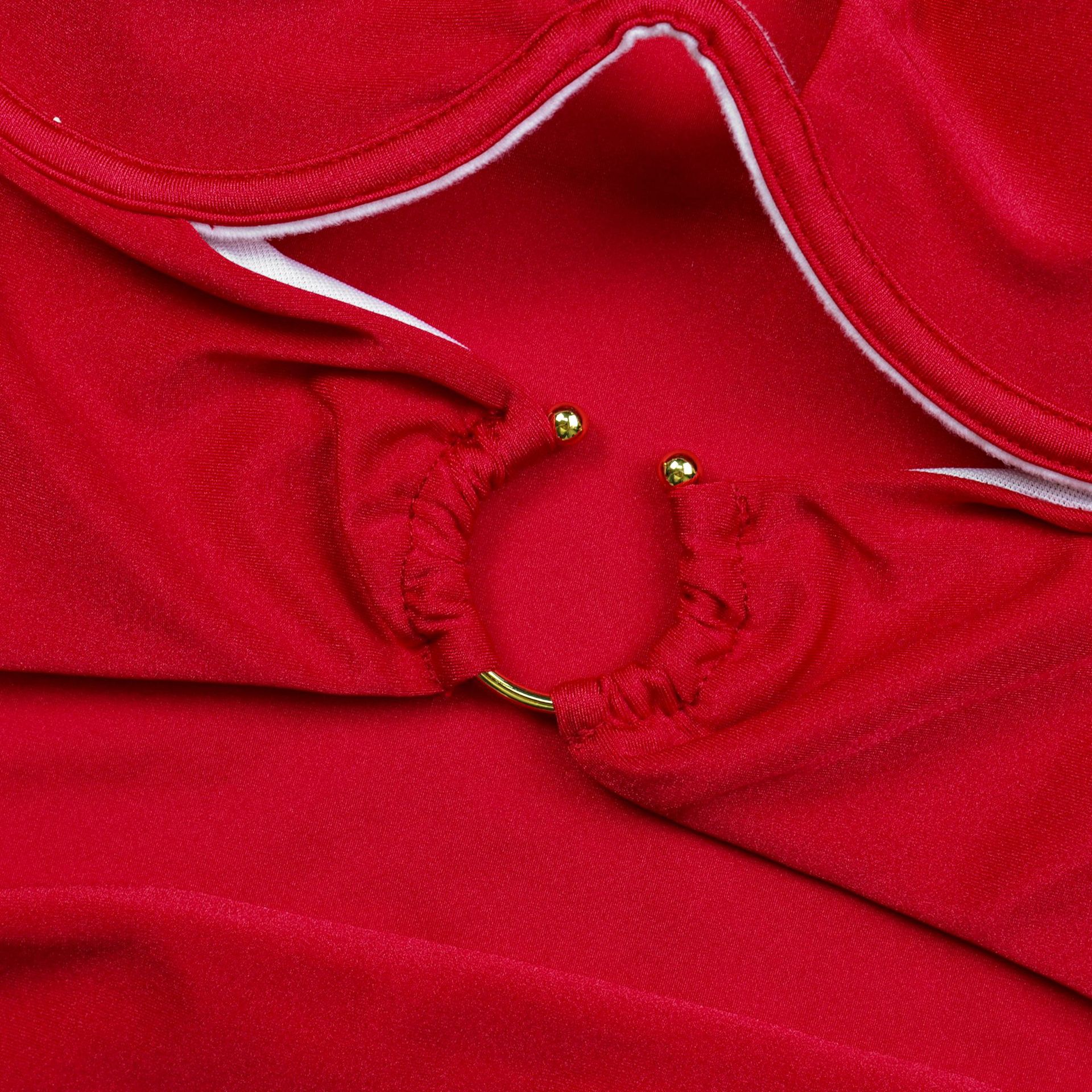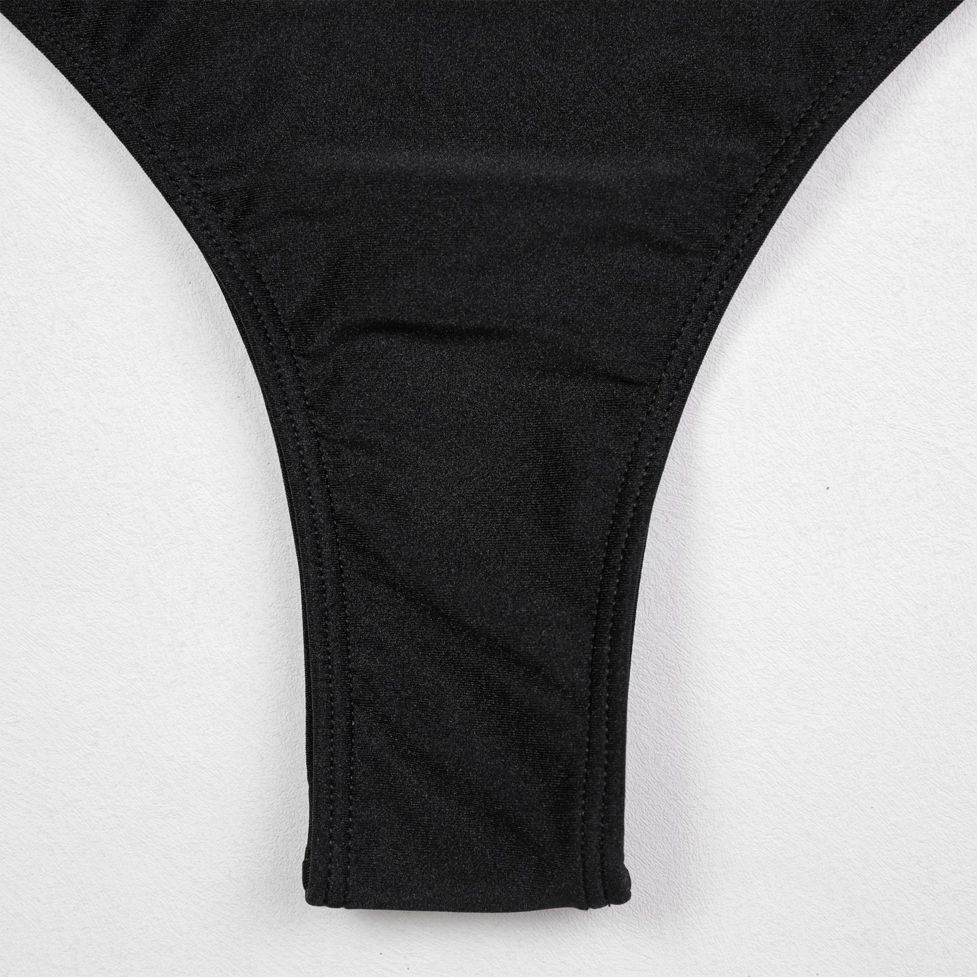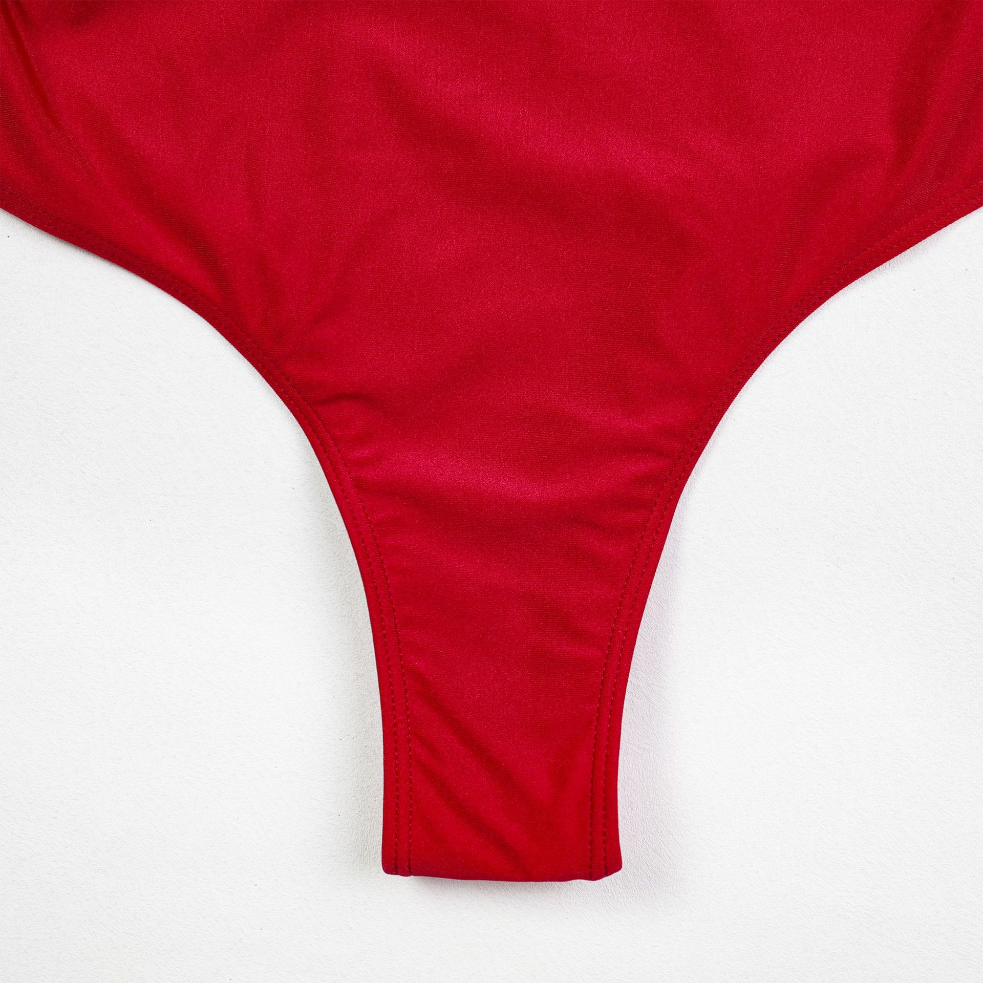 欧美大码单肩拧结泳衣连体比基尼钢托聚拢镂空金属扣纯色游泳衣女