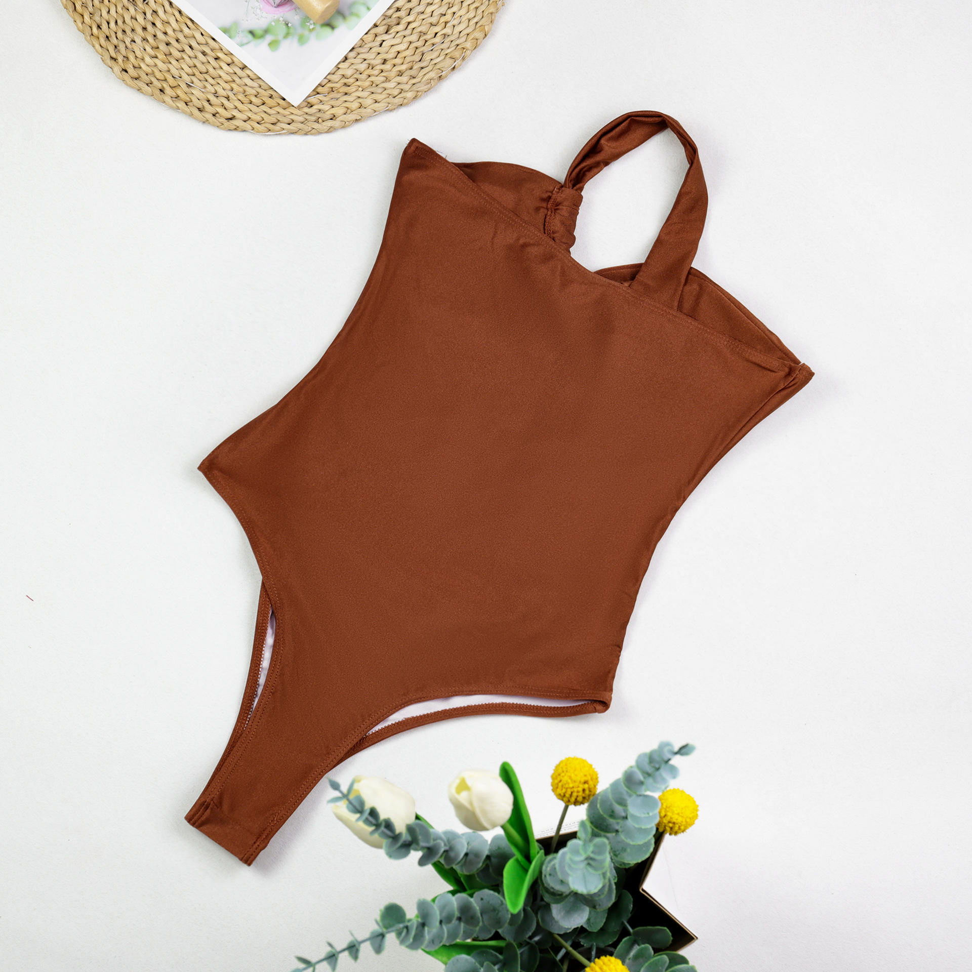 국경 간 독점 유럽과 미국의 대형 원 숄더 트위스트 원피스 수영복 스틸 푸시 업 솔리드 컬러 수영복 여성용 올인원스토어 가기