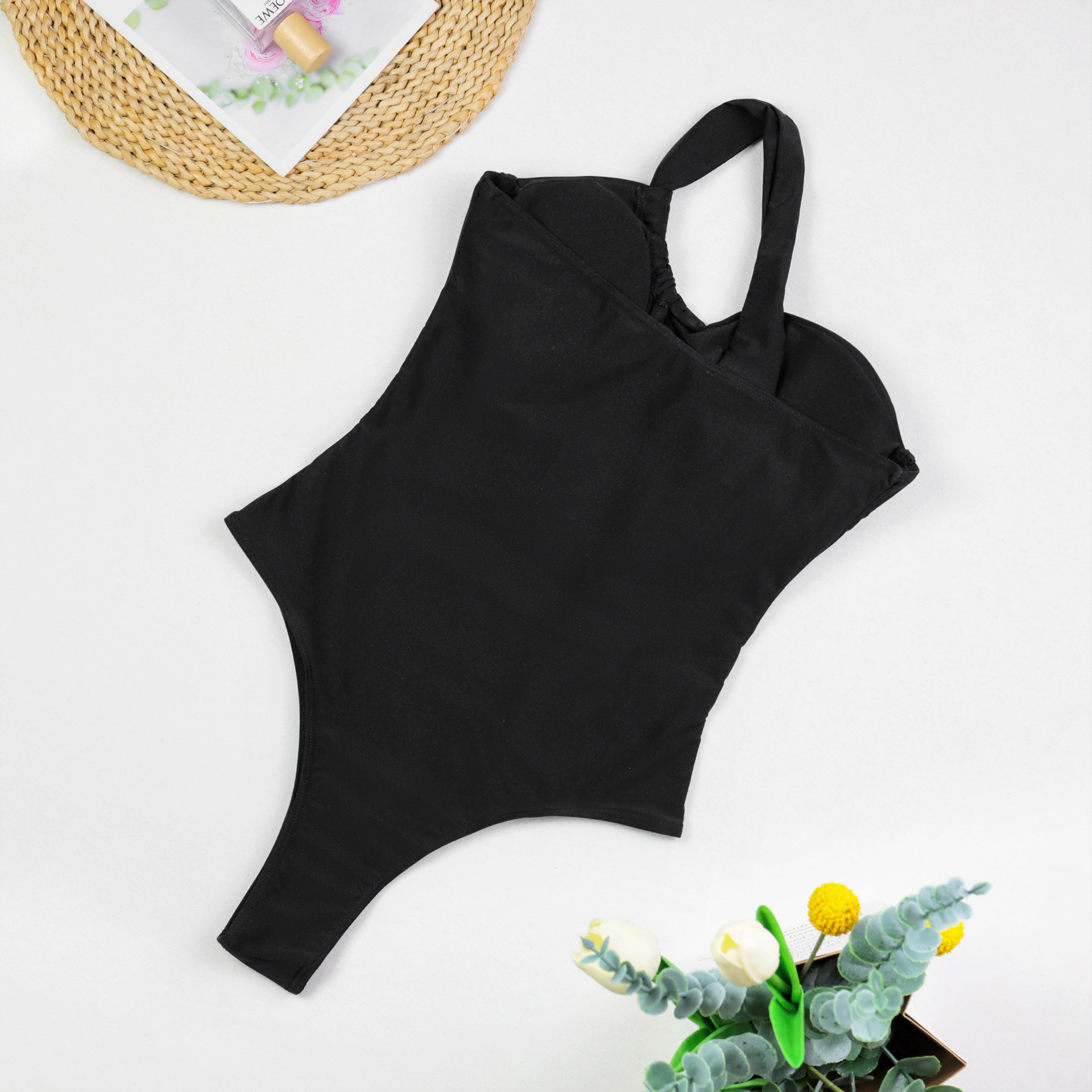 국경 간 독점 유럽과 미국의 대형 원 숄더 트위스트 원피스 수영복 스틸 푸시 업 솔리드 컬러 수영복 여성용 올인원