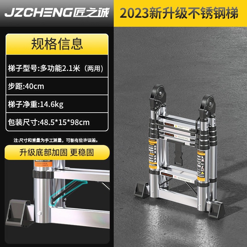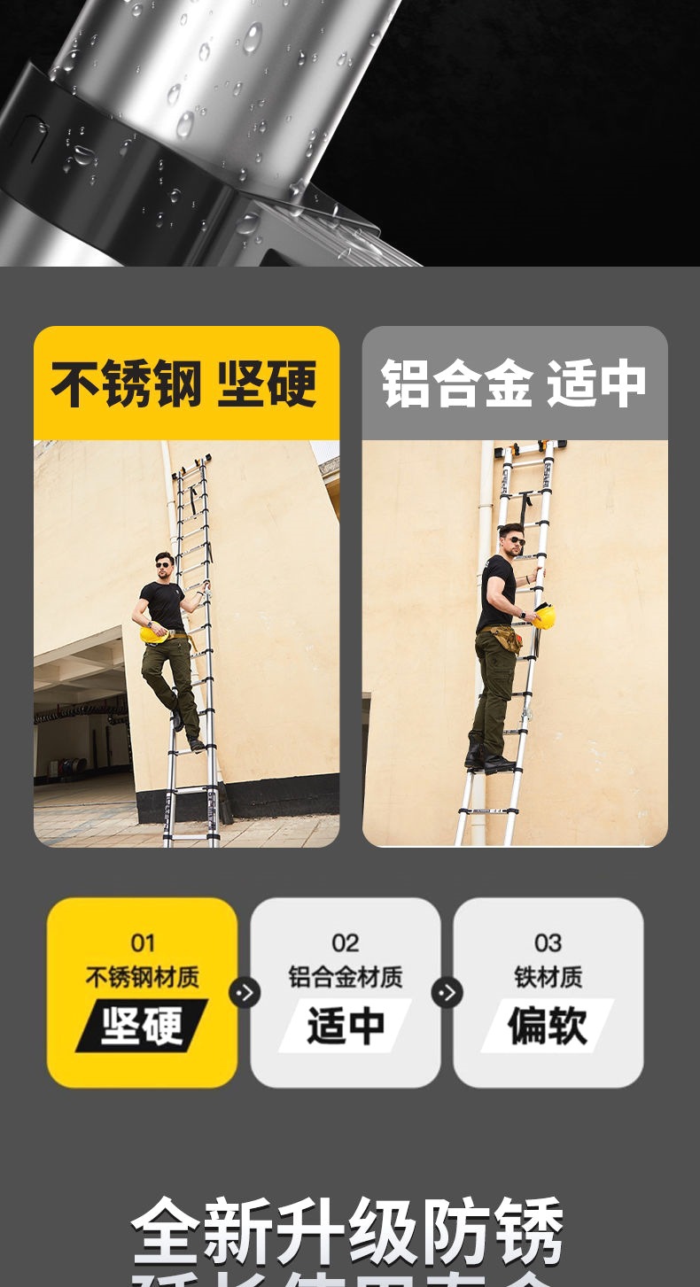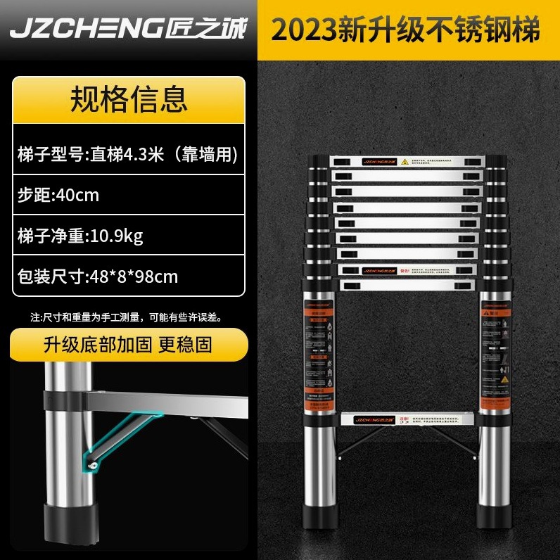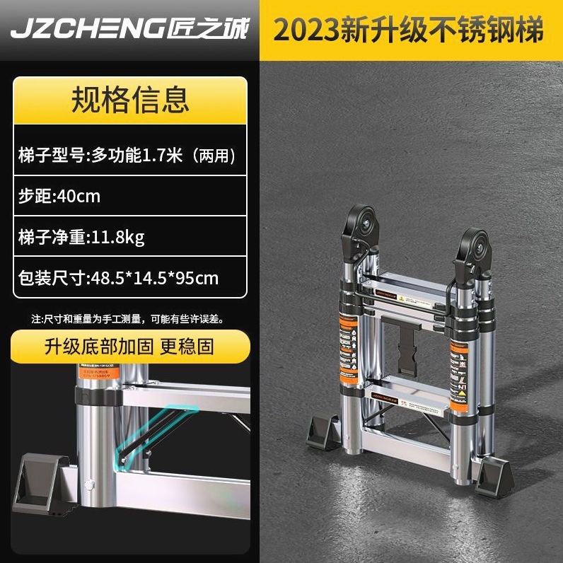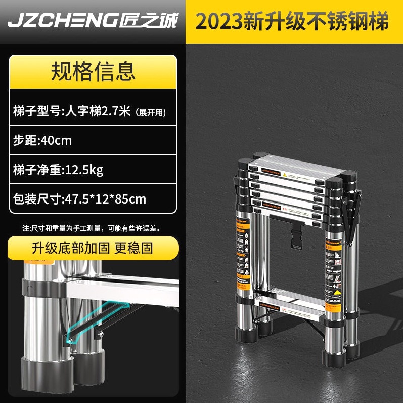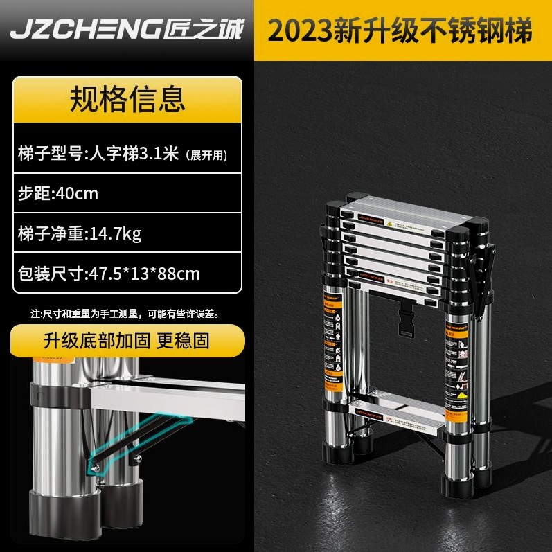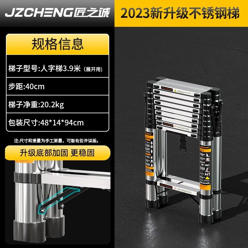 독일 수입 장인 Zhicheng 스테인레스 스틸 초두께 사다리 가정용 접는 헤어링 전기 기술자를위한 사다리꼴 두꺼운 휴대용 직선 사다리스토어 가기