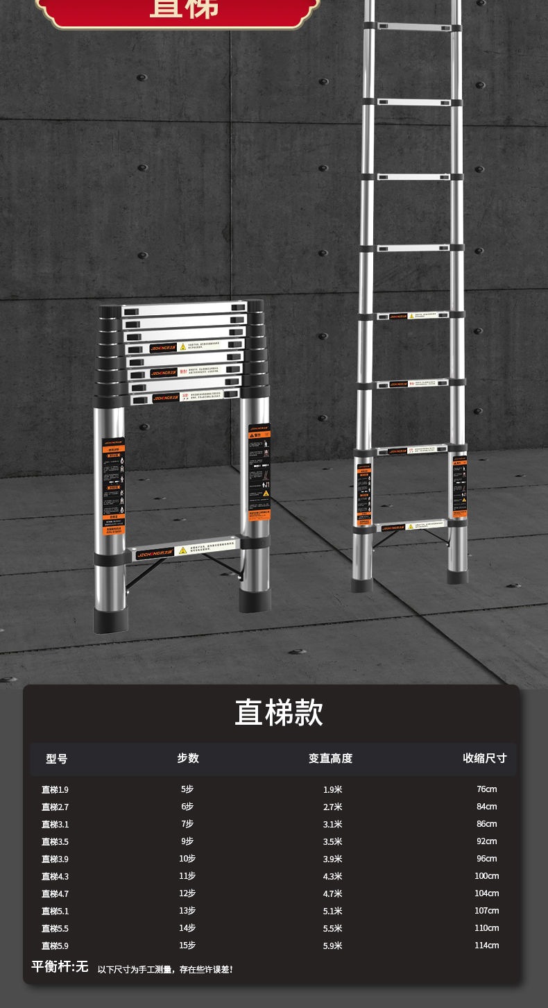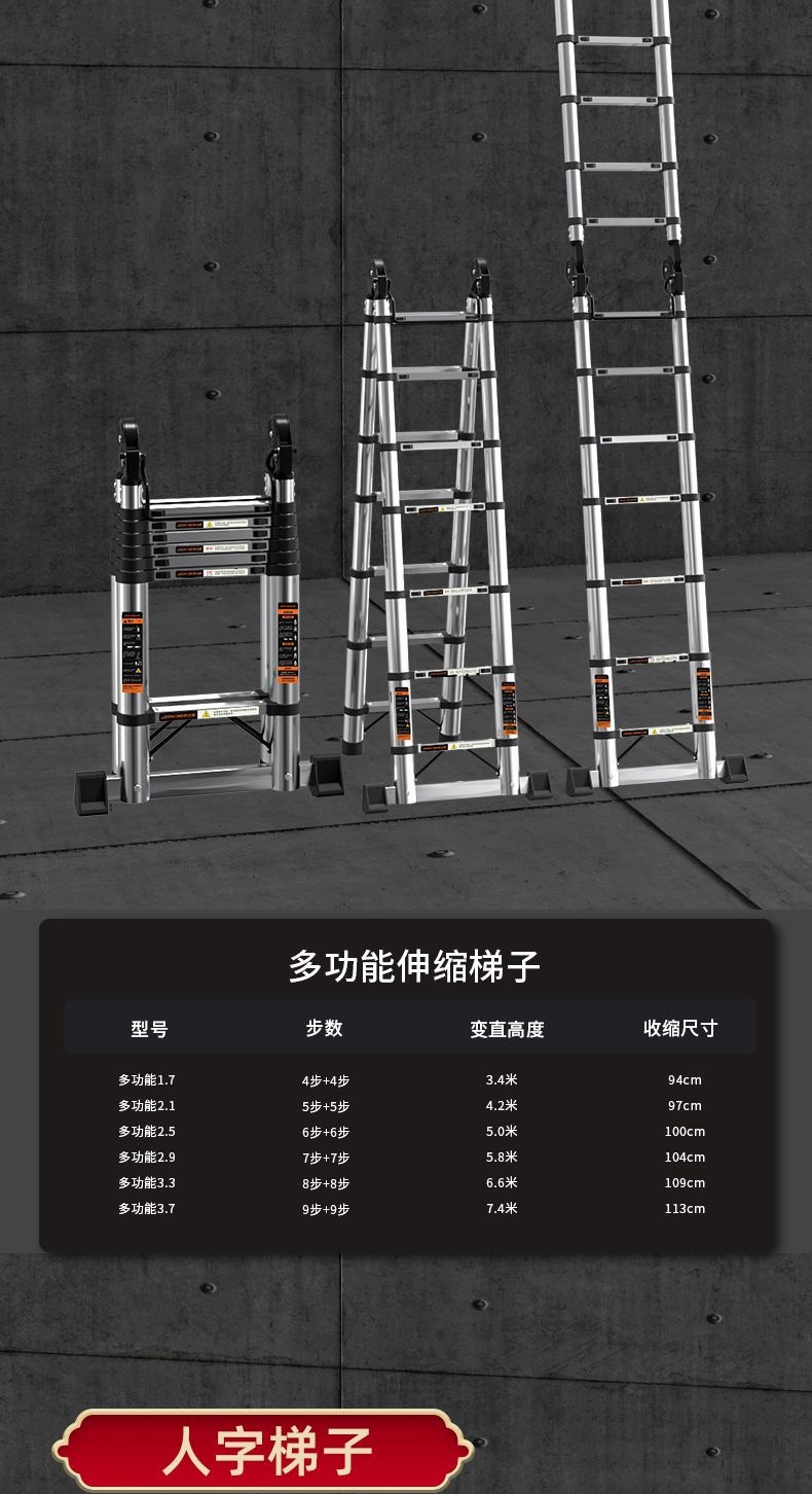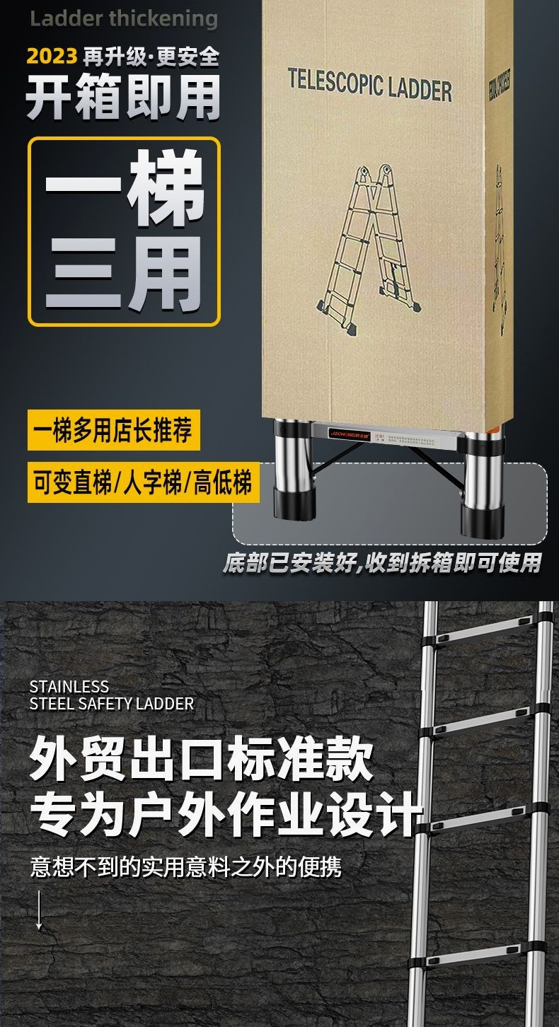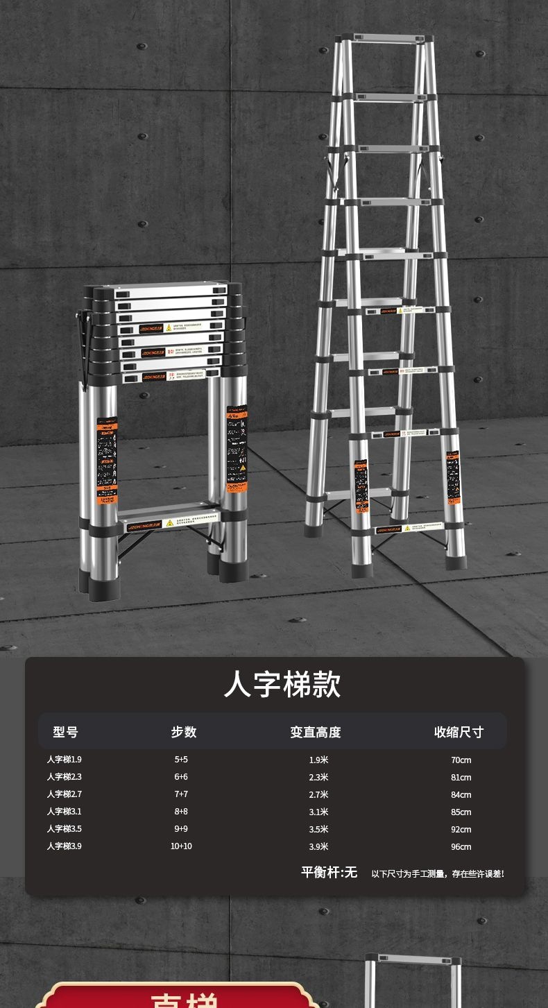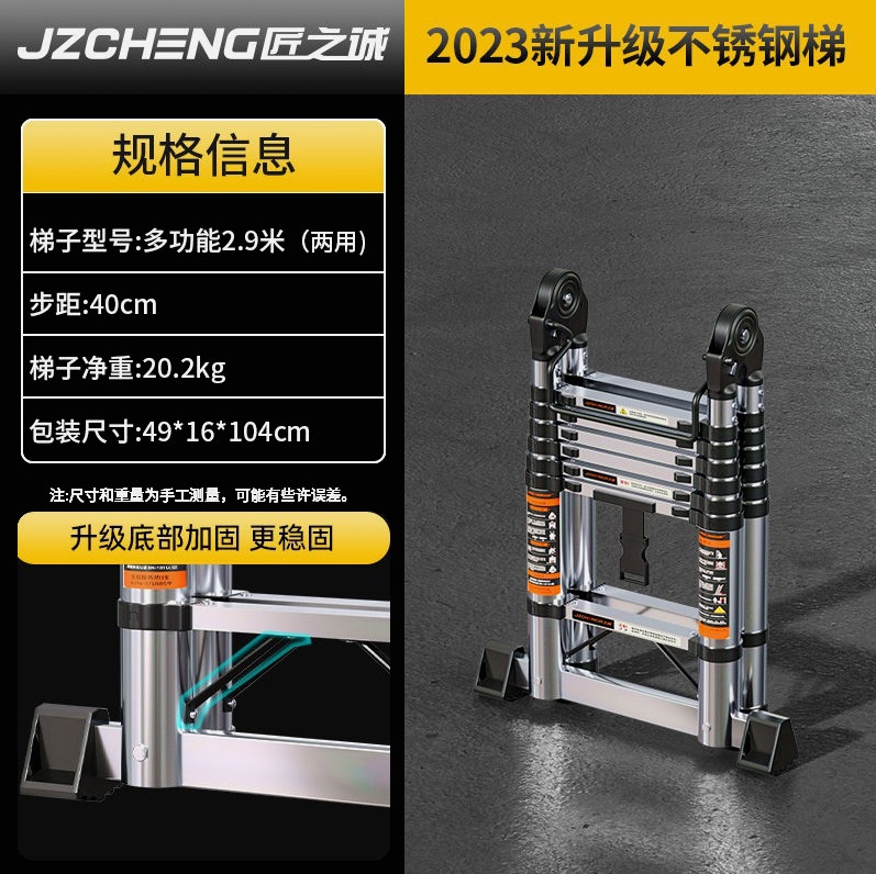 독일 수입 장인 Zhicheng 스테인레스 스틸 초두께 사다리 가정용 접는 헤어링 전기 기술자를위한 사다리꼴 두꺼운 휴대용 직선 사다리스토어 가기