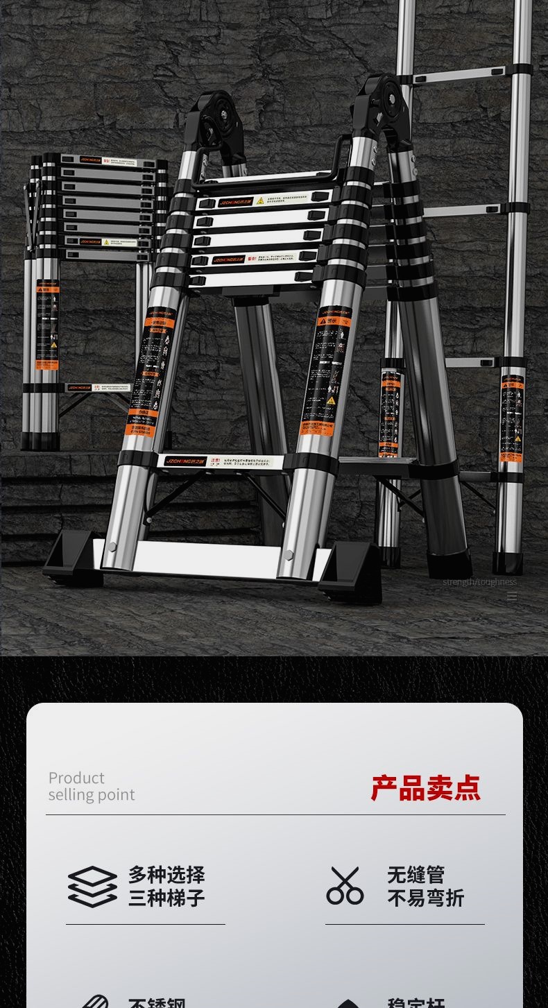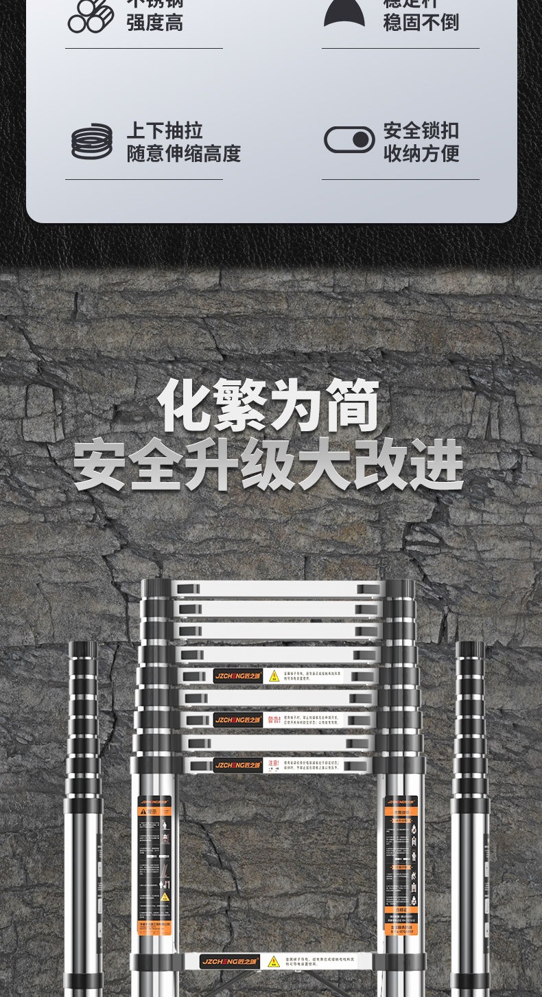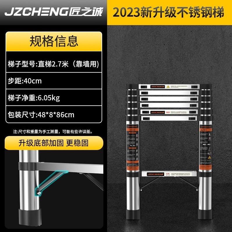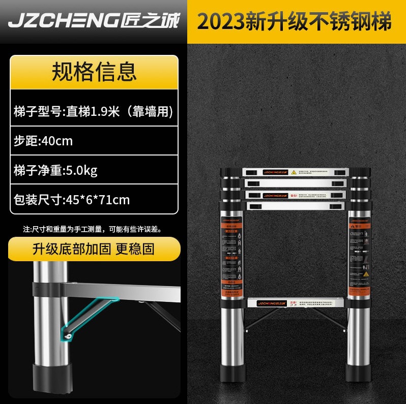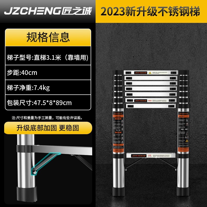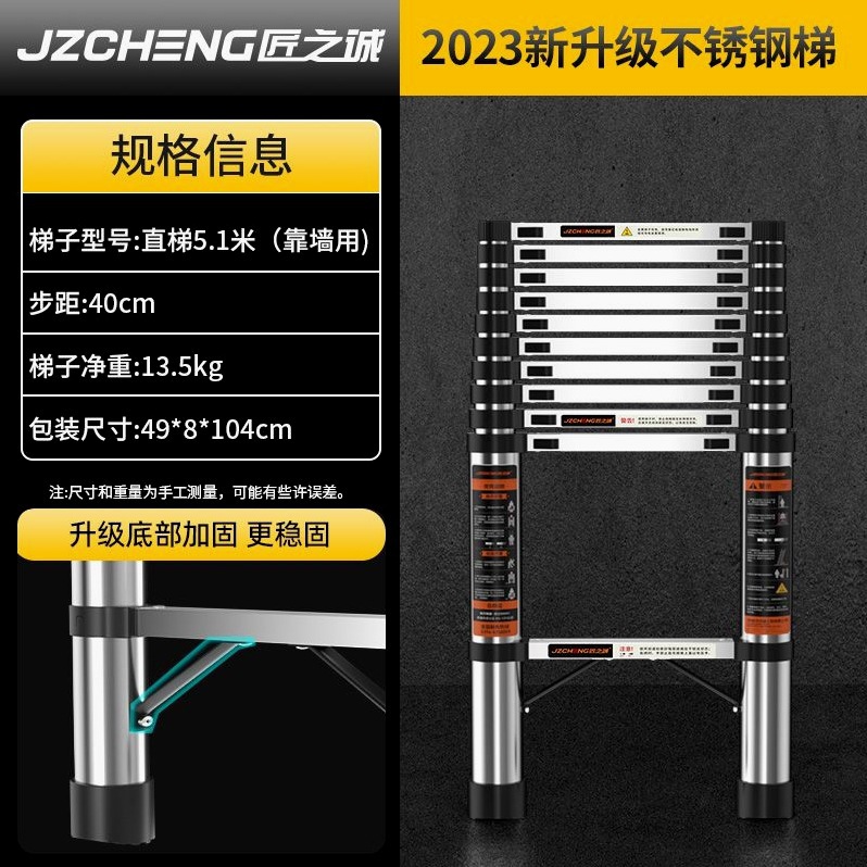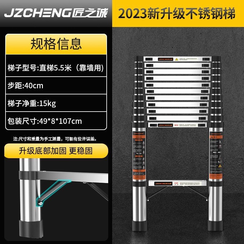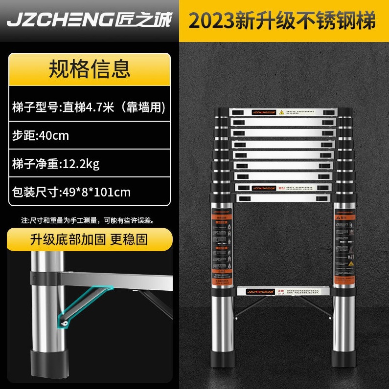 독일 수입 장인 Zhicheng 스테인레스 스틸 초두께 사다리 가정용 접는 헤어링 전기 기술자를위한 사다리꼴 두꺼운 휴대용 직선 사다리