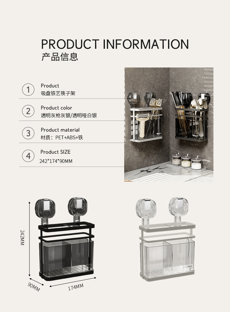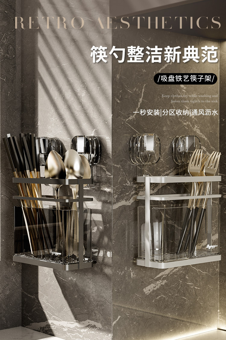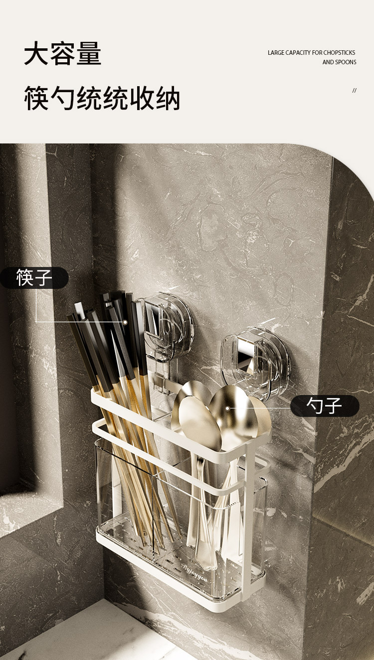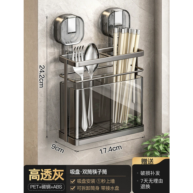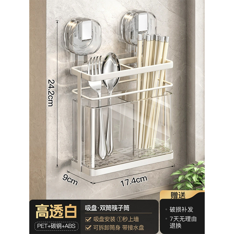 석션 컵 젓가락 홀더 벽걸이 형 배수 주방 보관 랙 가정용 비 천공 벽 장착 스푼 젓가락 보관 상자