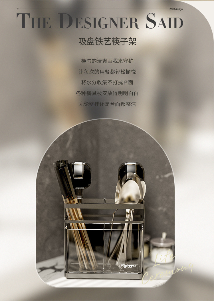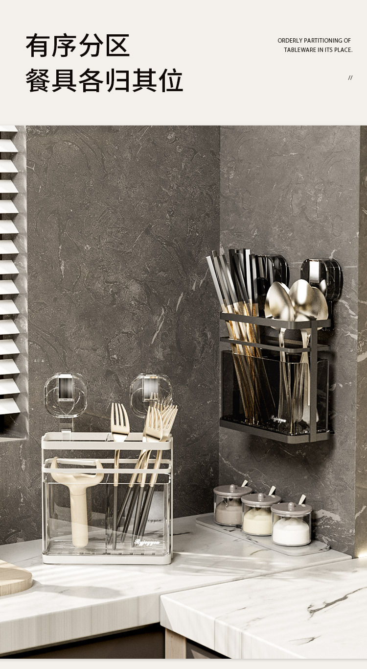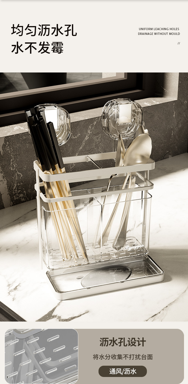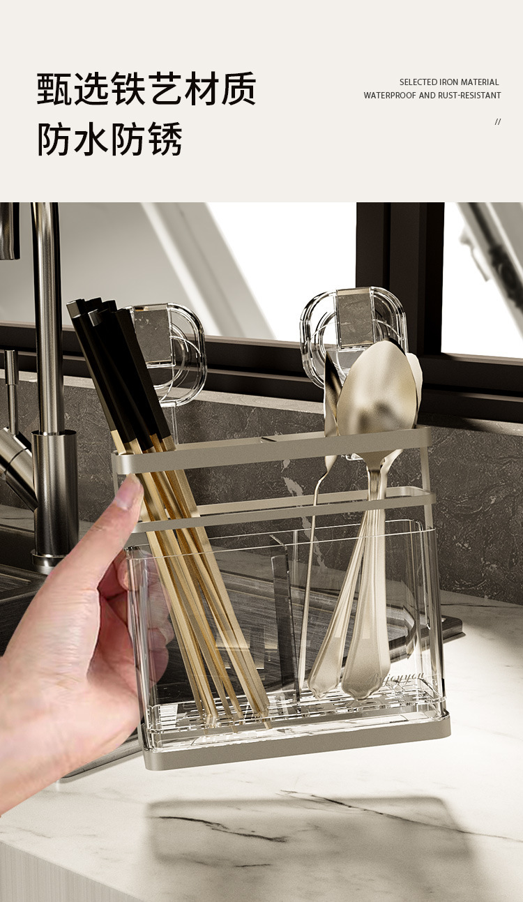 석션 컵 젓가락 홀더 벽걸이 형 배수 주방 보관 랙 가정용 비 천공 벽 장착 스푼 젓가락 보관 상자