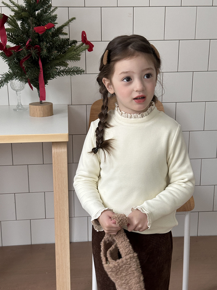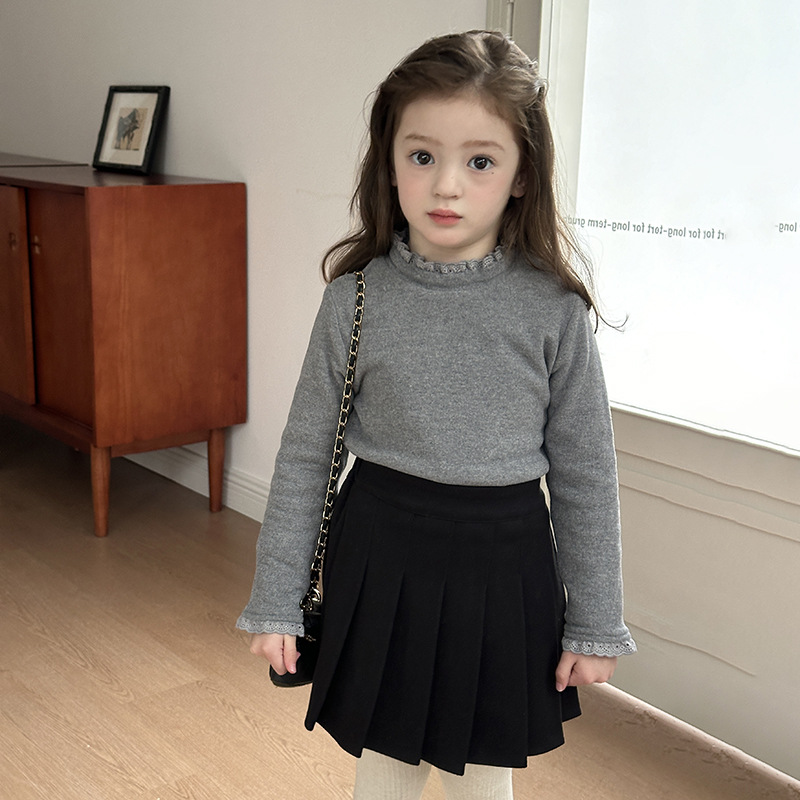 Elmo Beibei 여아 겨울 따뜻한 더블 레이어 두꺼운 따뜻한 기질 레이스 바닥 셔츠 탑