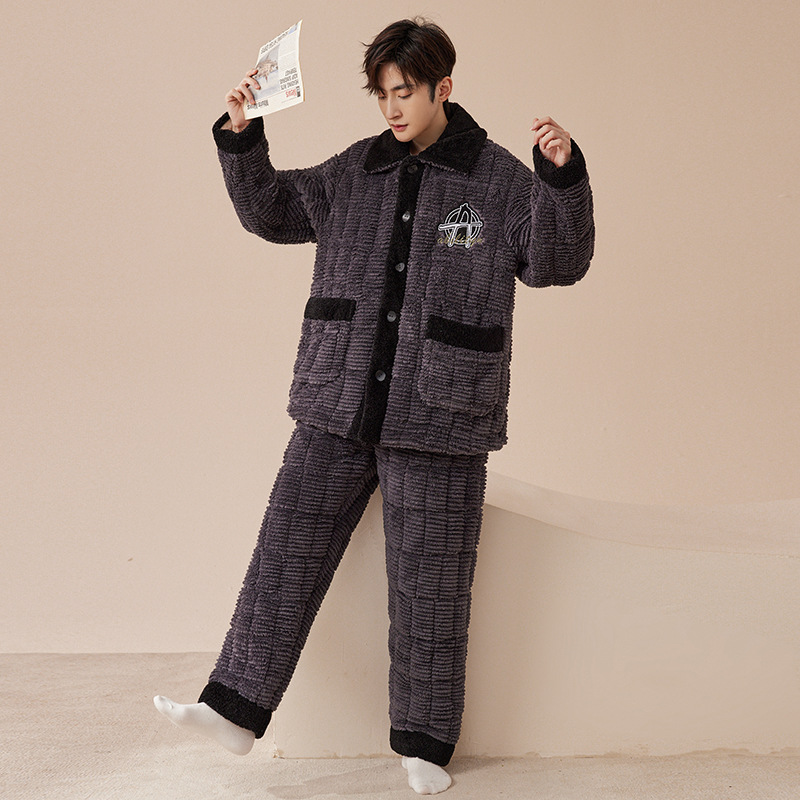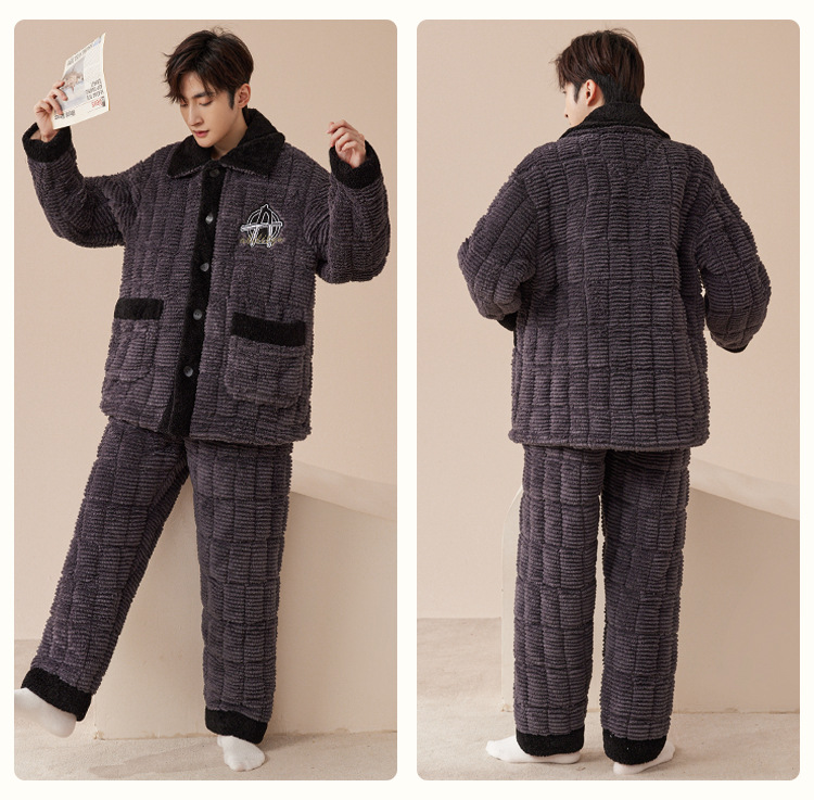 산호 양털 잠옷 남자 3 층 플러스 사이즈 남자 겨울 따뜻한 플란넬 퀼트 홈 옷 가을과 겨울