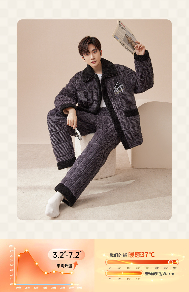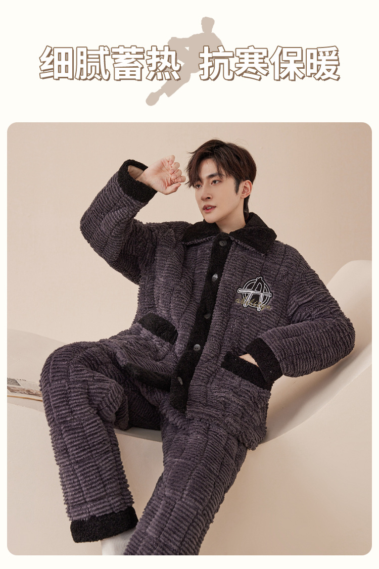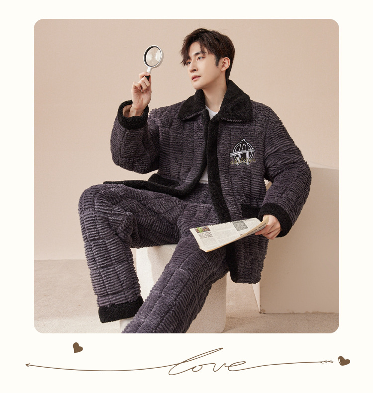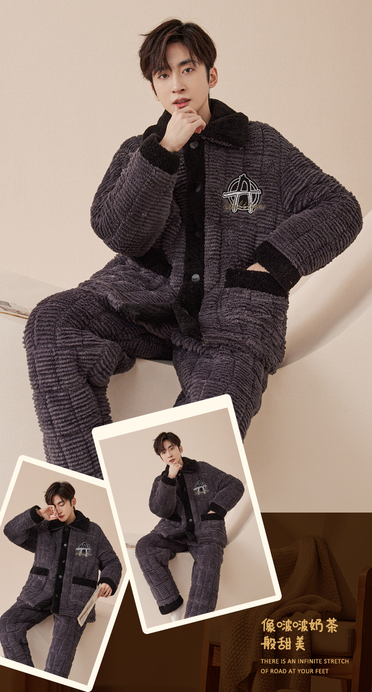 산호 양털 잠옷 남자 3 층 플러스 사이즈 남자 겨울 따뜻한 플란넬 퀼트 홈 옷 가을과 겨울스토어 가기