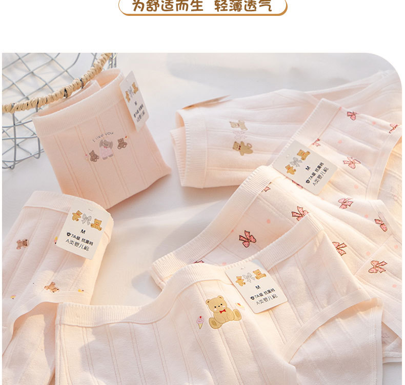 클래스 A 아기 면화 속옷 여성 7A 항균 Crotch 통기성 곰 인쇄 중간 허리 엉덩이 소녀 학생 브리프스토어 가기