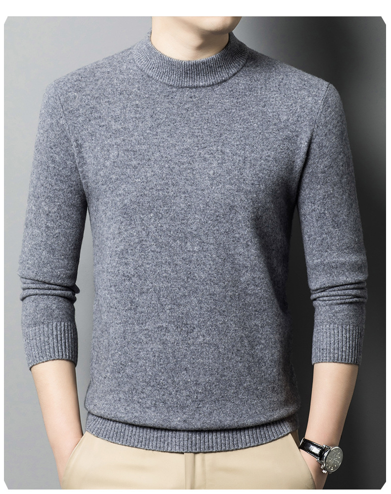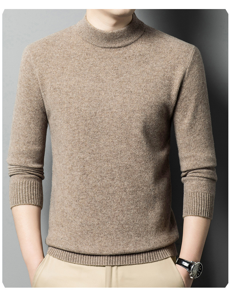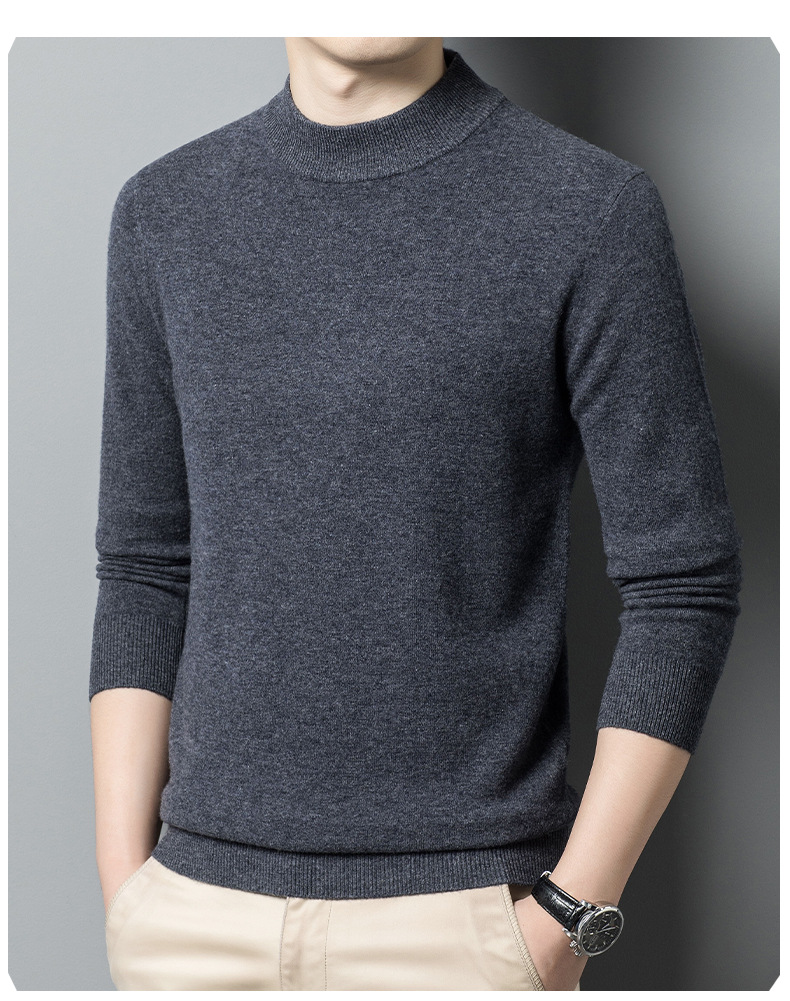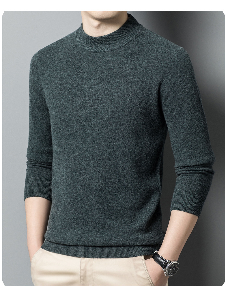 500g 순수 양모 남성 스웨터 두꺼운 가을과 겨울 반 높은 칼라 따뜻한 단색 기본 니트 스웨터 남성