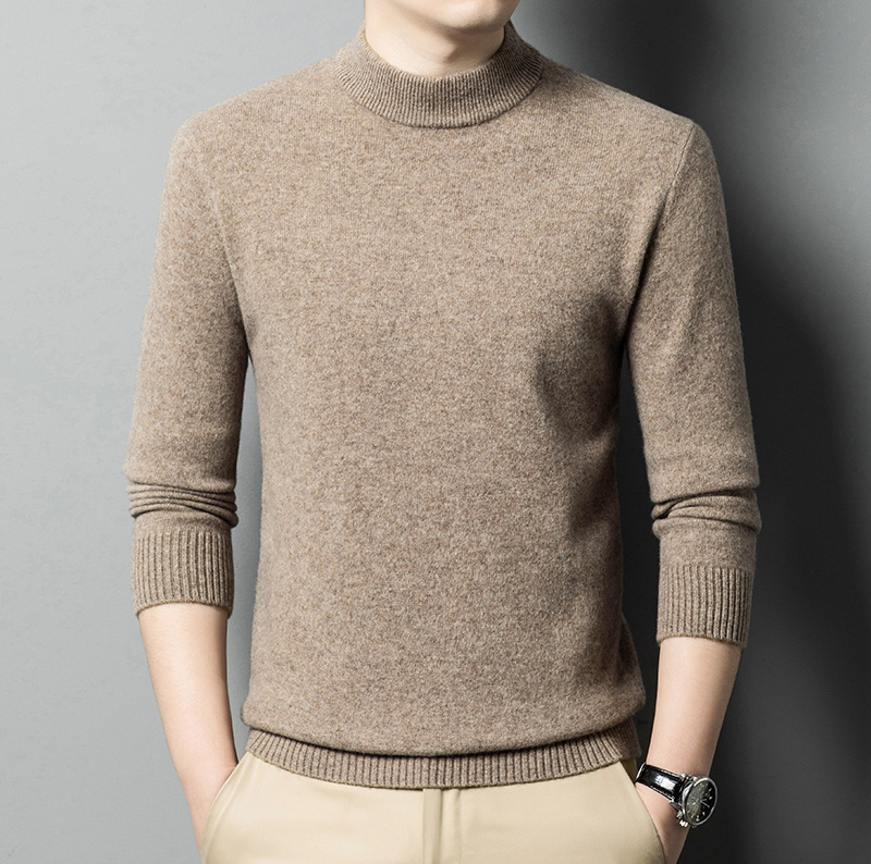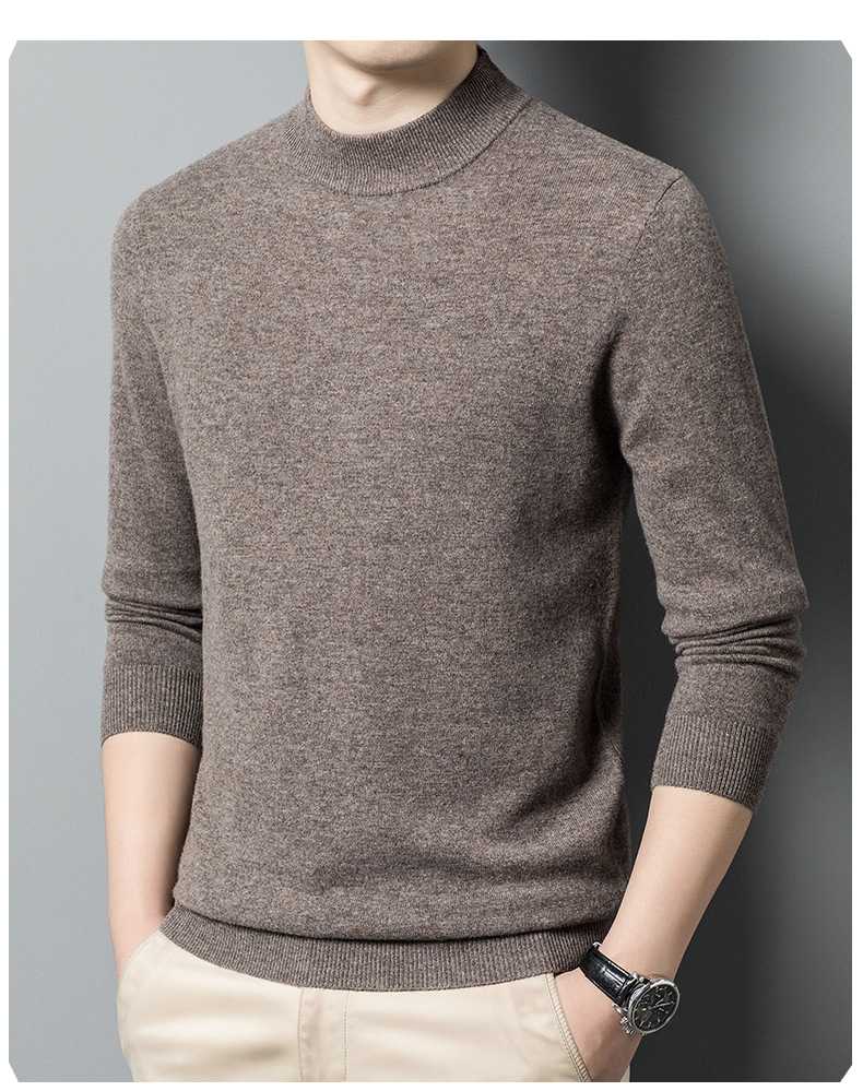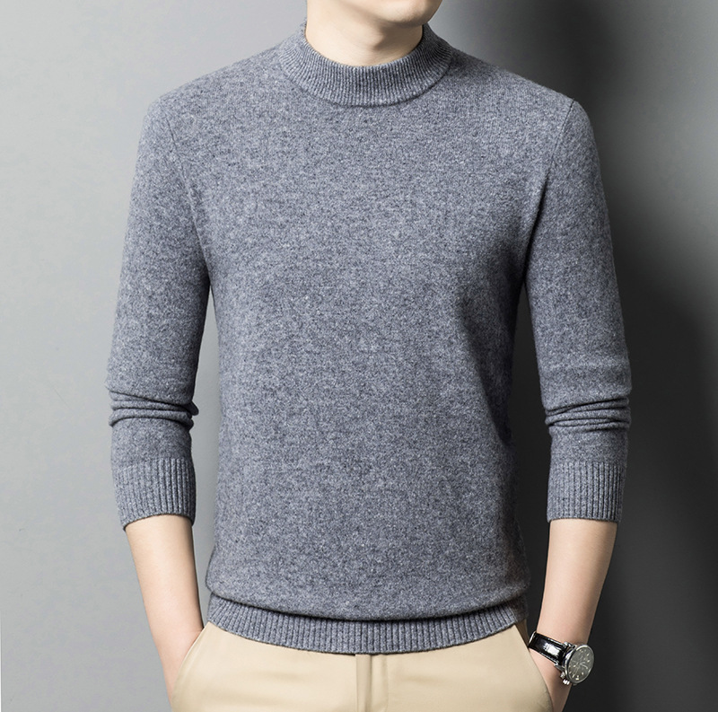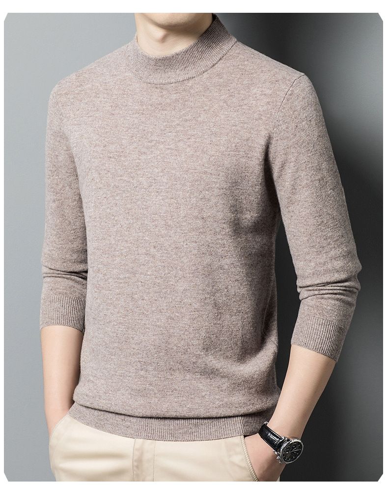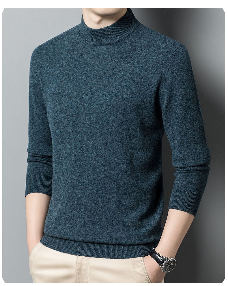 500g 순수 양모 남성 스웨터 두꺼운 가을과 겨울 반 높은 칼라 따뜻한 단색 기본 니트 스웨터 남성