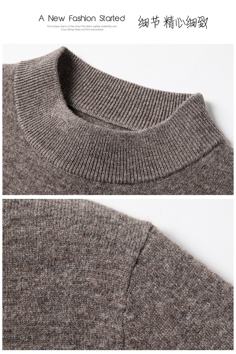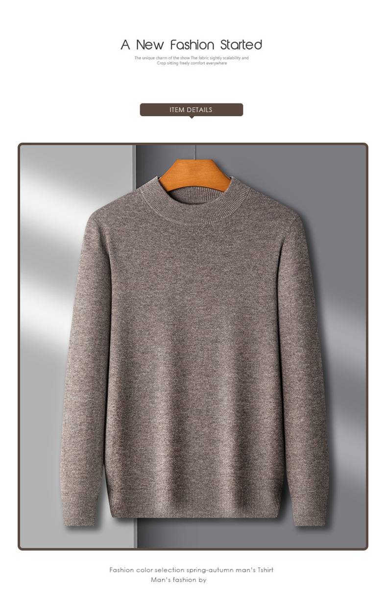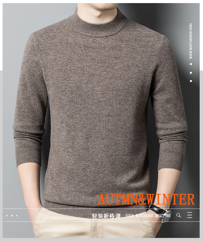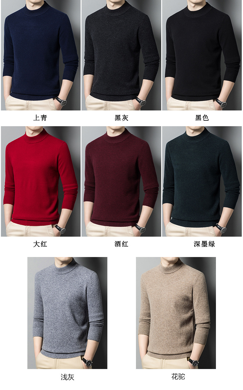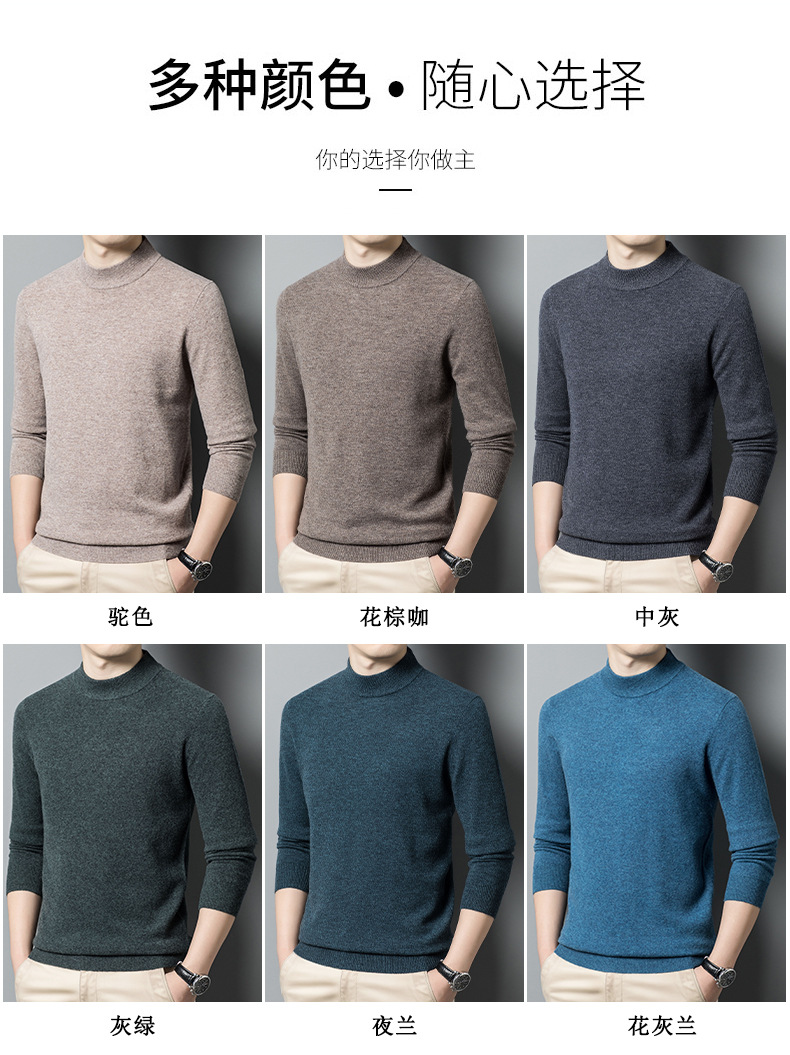 500g 순수 양모 남성 스웨터 두꺼운 가을과 겨울 반 높은 칼라 따뜻한 단색 기본 니트 스웨터 남성스토어 가기