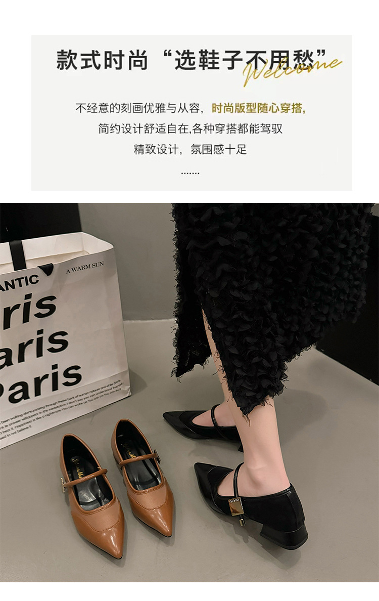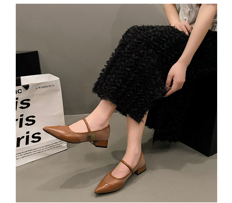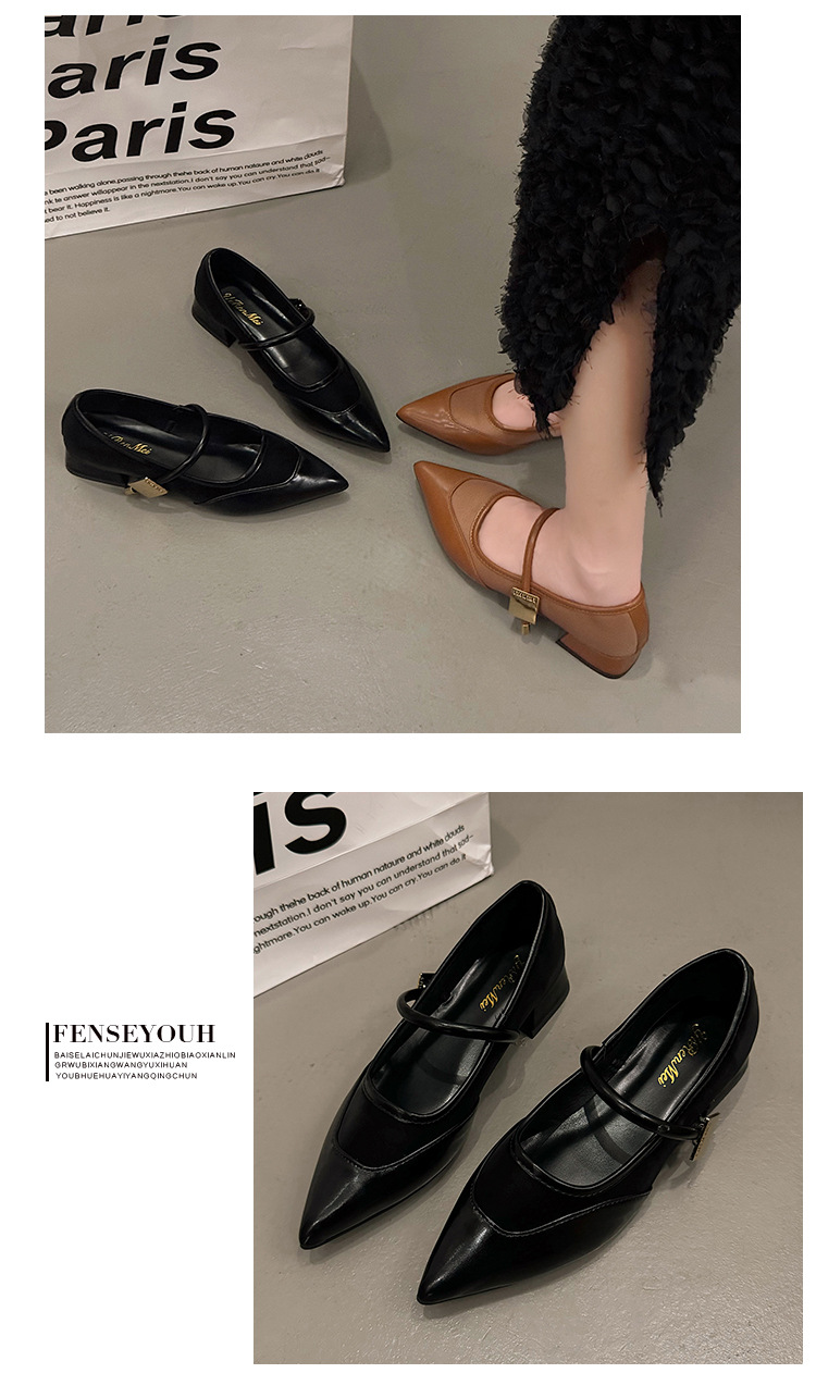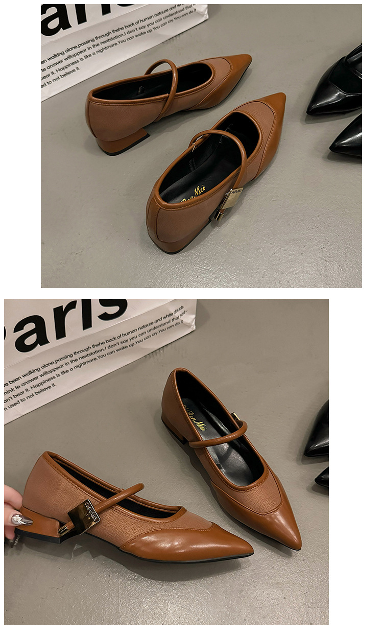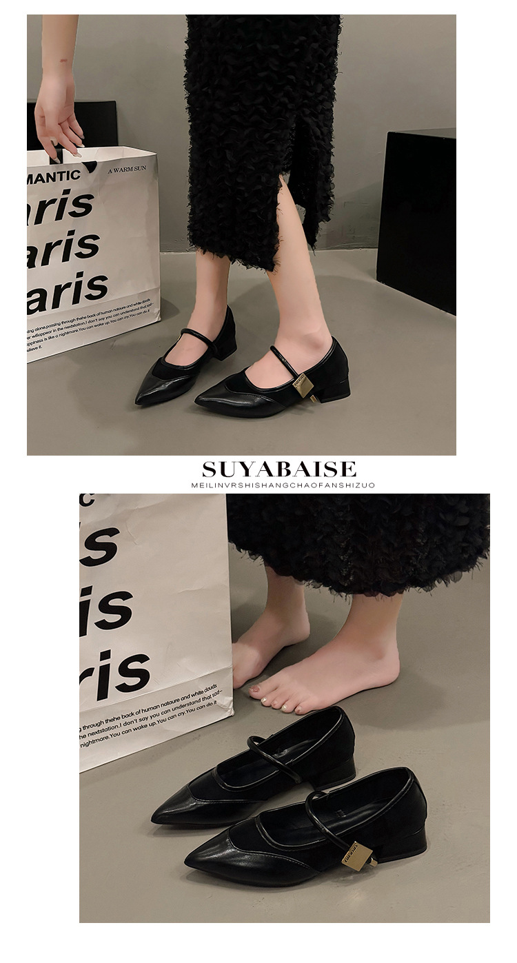 프랑스 스타일 우아한 뾰족한 발가락 싱글 레이어 신발 여성의 2024 가을 새로운 낮은 입 메리 제인 신발 부드러운 밑바닥이있는 평평한 무당 신발스토어 가기