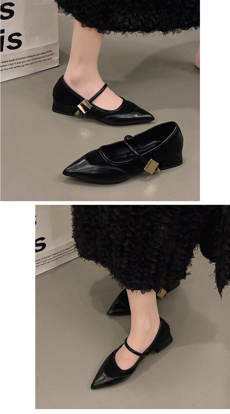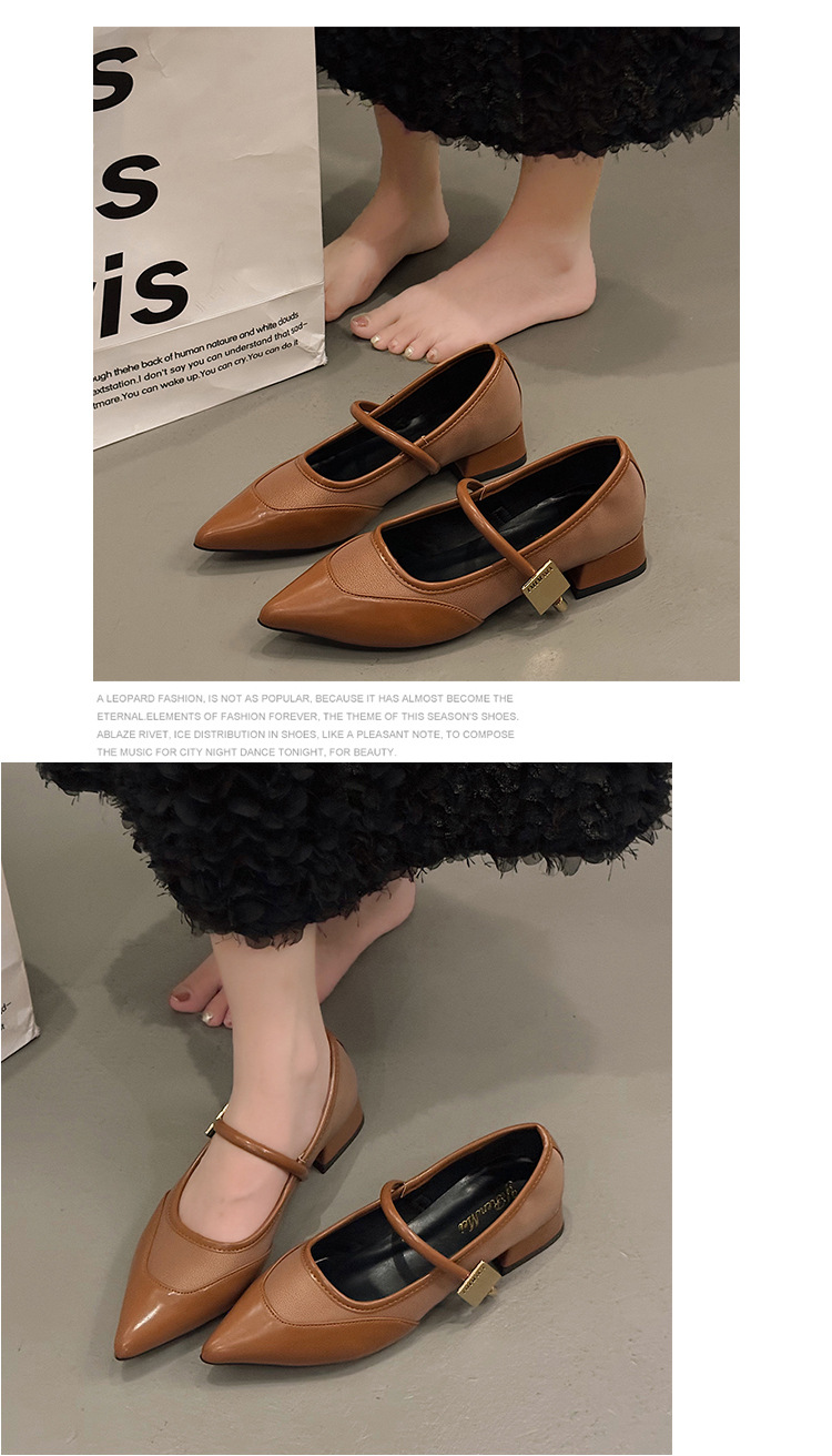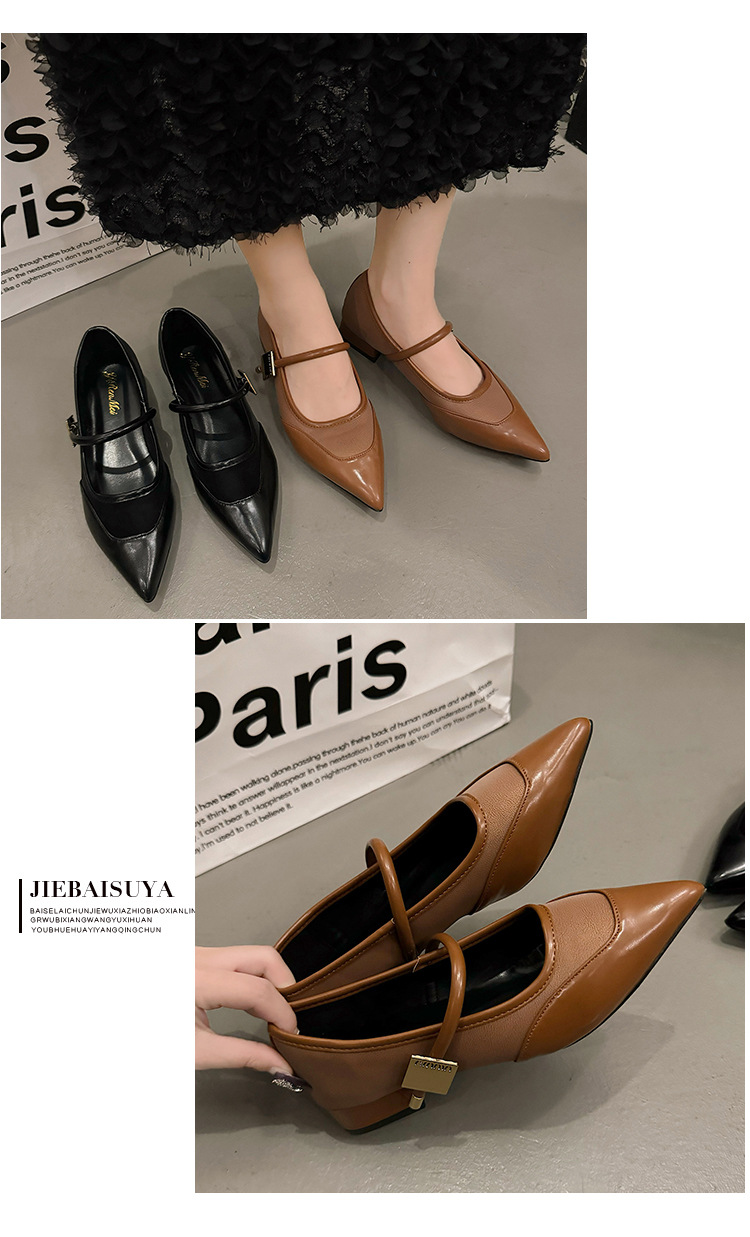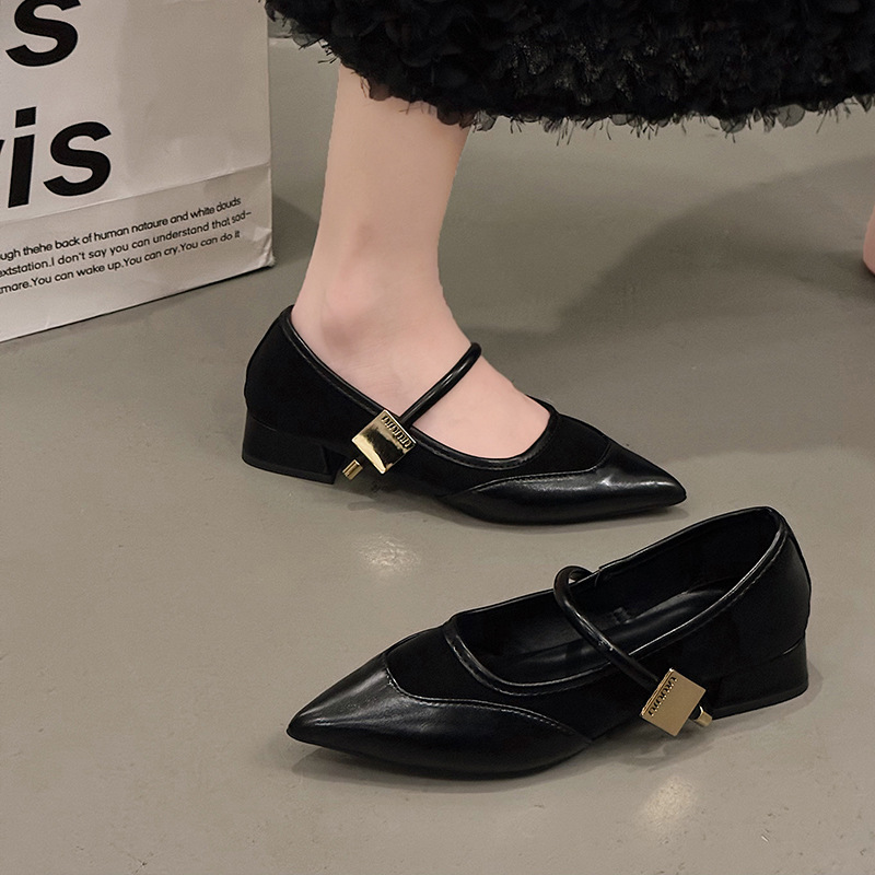 프랑스 스타일 우아한 뾰족한 발가락 싱글 레이어 신발 여성의 2024 가을 새로운 낮은 입 메리 제인 신발 부드러운 밑바닥이있는 평평한 무당 신발스토어 가기