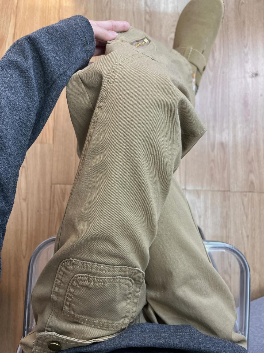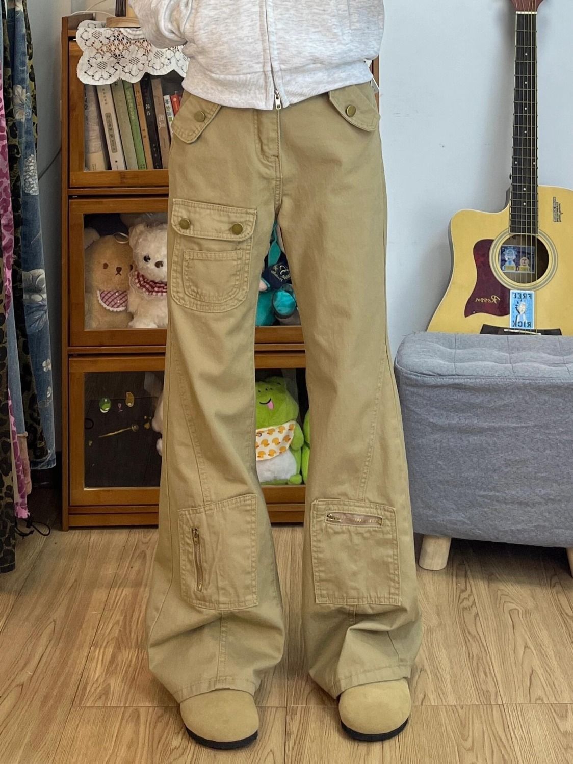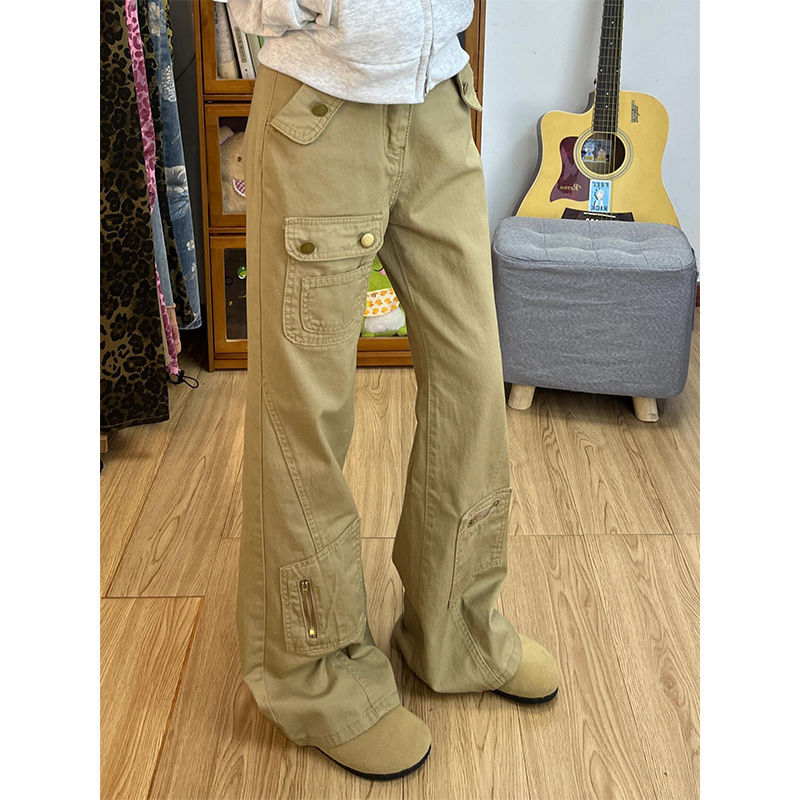 아메리칸 스타일 카키 디자인 센스 툴링 청바지 여성용 겨울 레트로 하이 웨이스트 스트레이트 슬리밍 트럼펫 바지스토어 가기