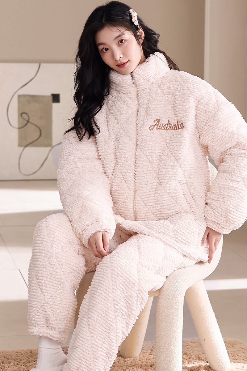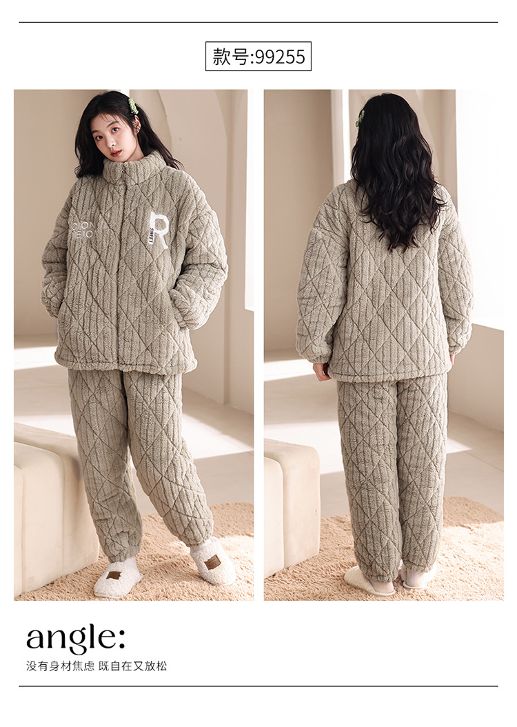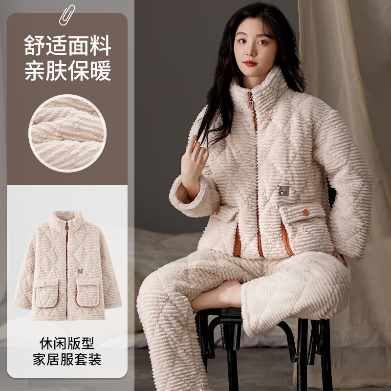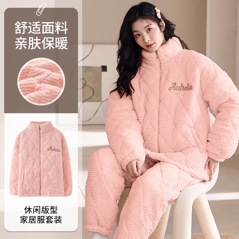 겨울 새 잠옷 여성의 겨울 기모 플란넬 3 층 두꺼운 코튼 패딩 아웃웨어 캐주얼 홈 코튼 패딩 재킷스토어 가기