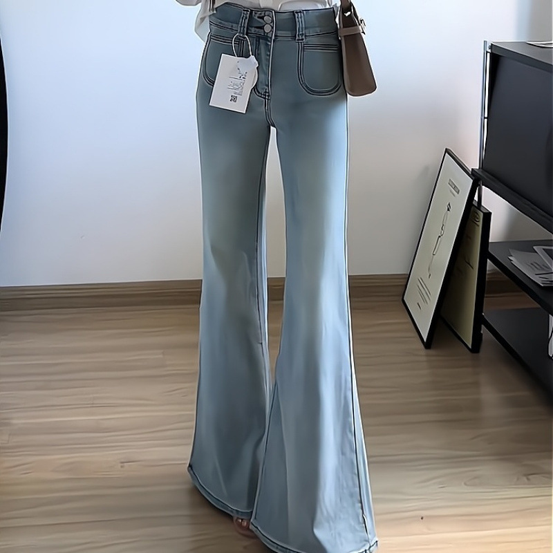 통근자 새로운 밝은 색 높은 허리 마이크로 라즈 청바지 여성의 2024 여름 얇은 슬림 룩 작은 남자를위한 탄성 플래 팬츠스토어 가기