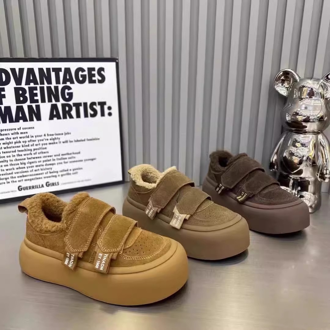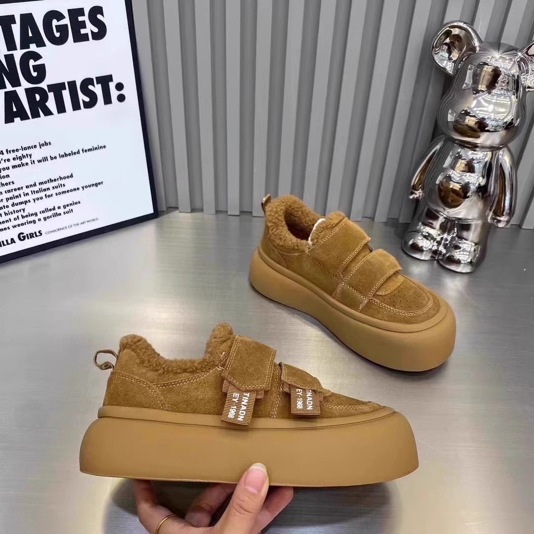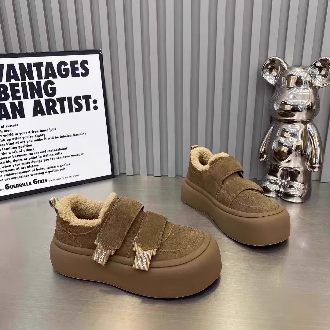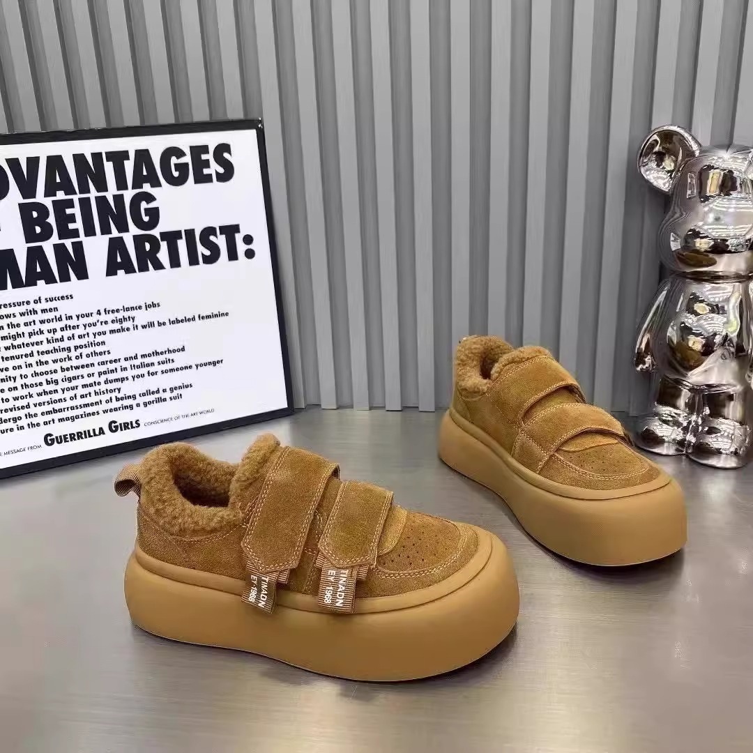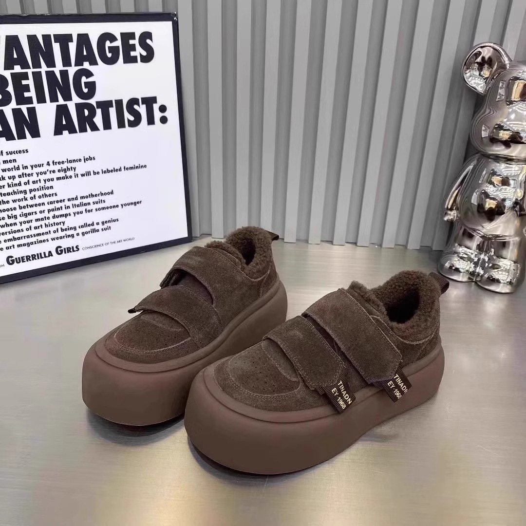 벨크로 못생긴 귀여운 레트로 큰 머리 플랫폼 신발 여성 2024 새로운 기모 두꺼운 캐주얼 비스킷 빵 신발스토어 가기