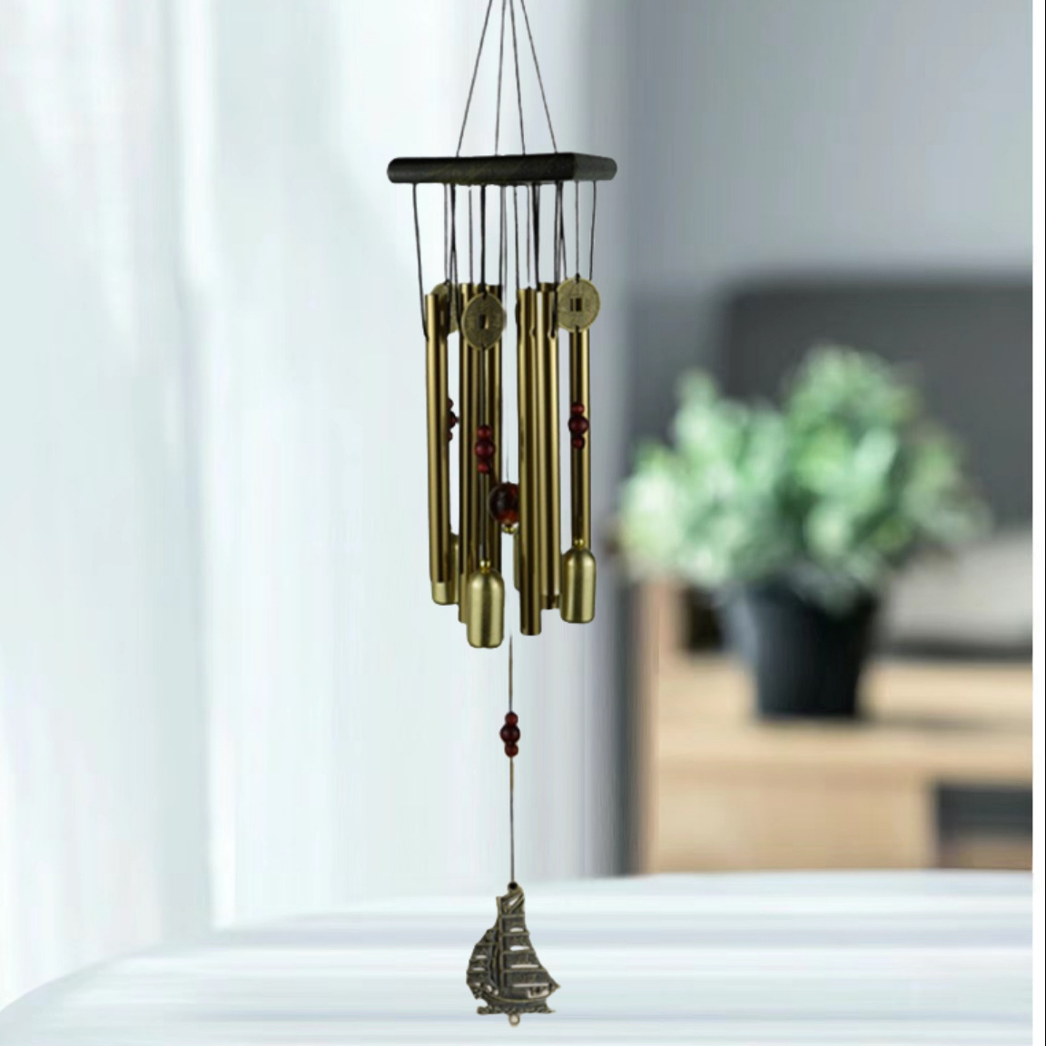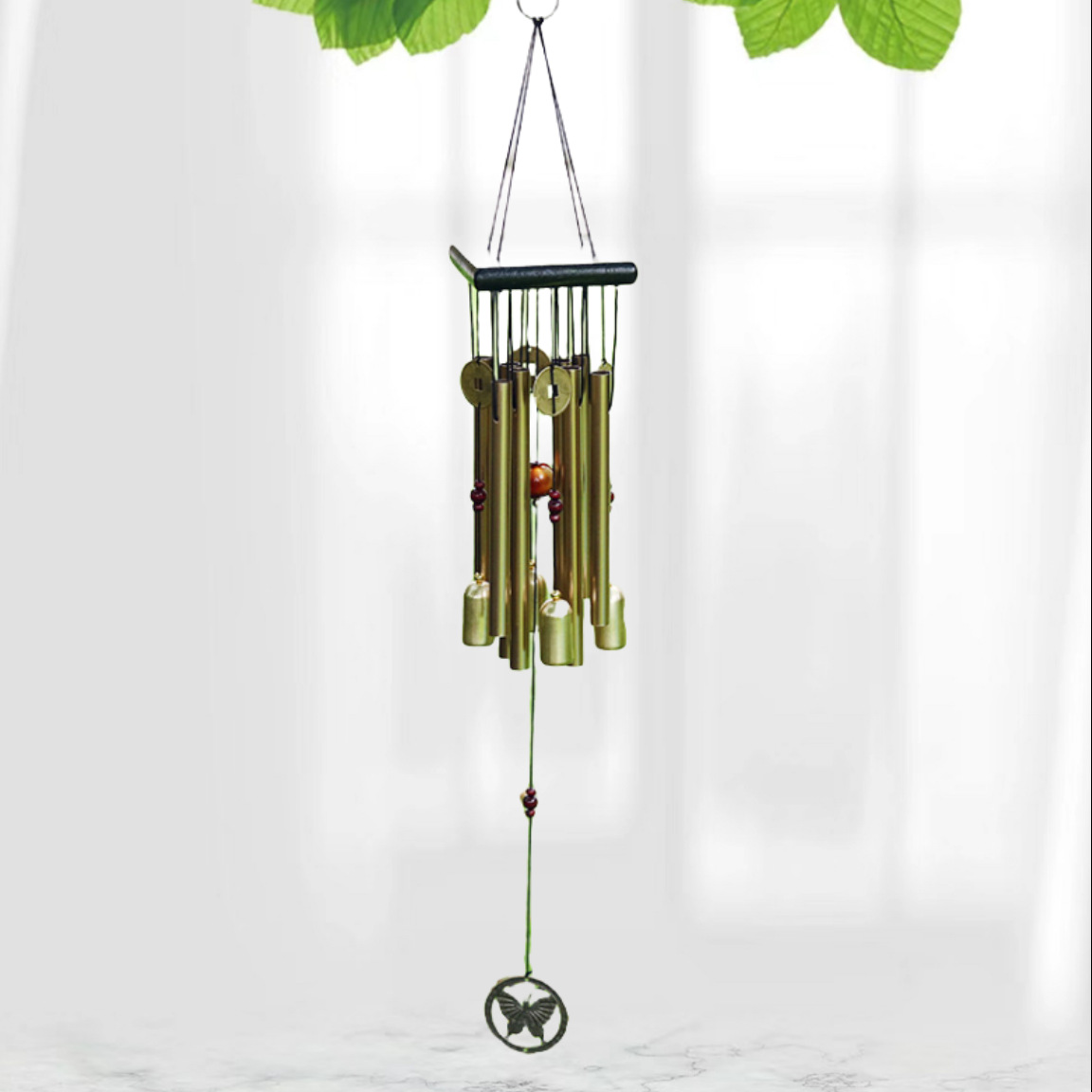 12 튜브 팬 소나무 금속 멀티 튜브 바람 차임 녹 방지 이우 제조 업체 청동 멀티 튜브 야외 정원 장식 도매스토어 가기