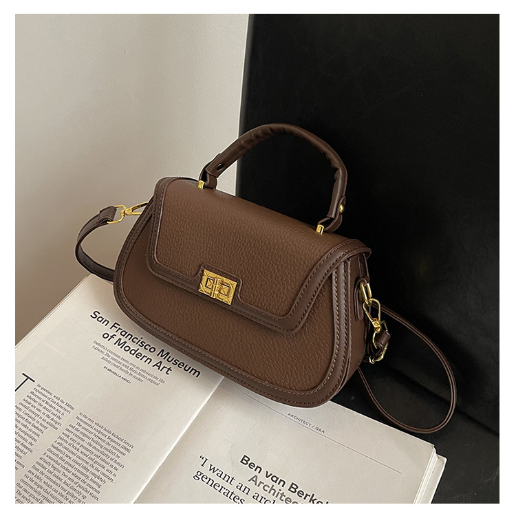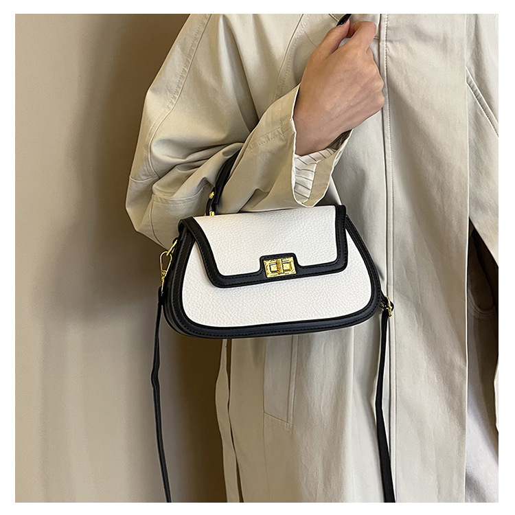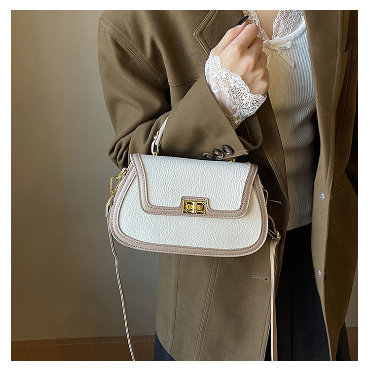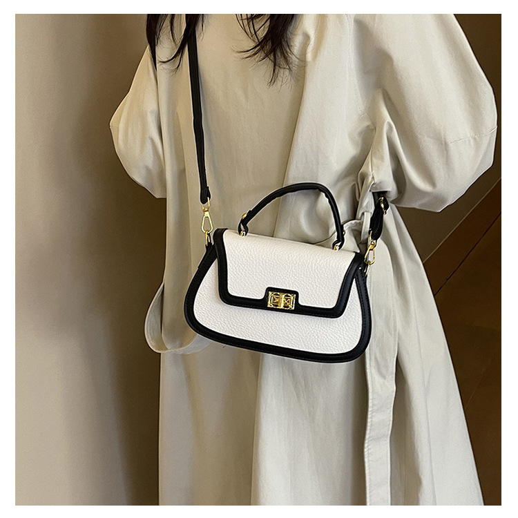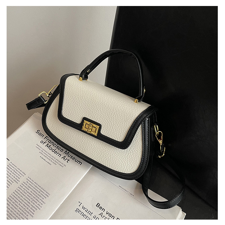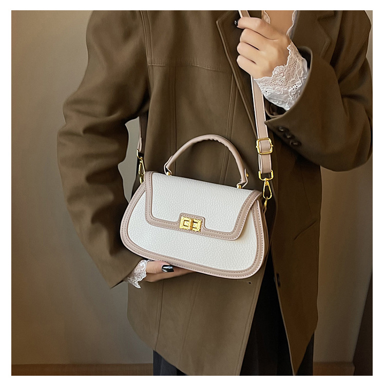 국경 간 텍스처 백 여성의 2024 새로운 레트로 콘트라스트 컬러 잠금 휴대용 소형 스퀘어 백 하이 엔드 어깨 크로스 바디 백