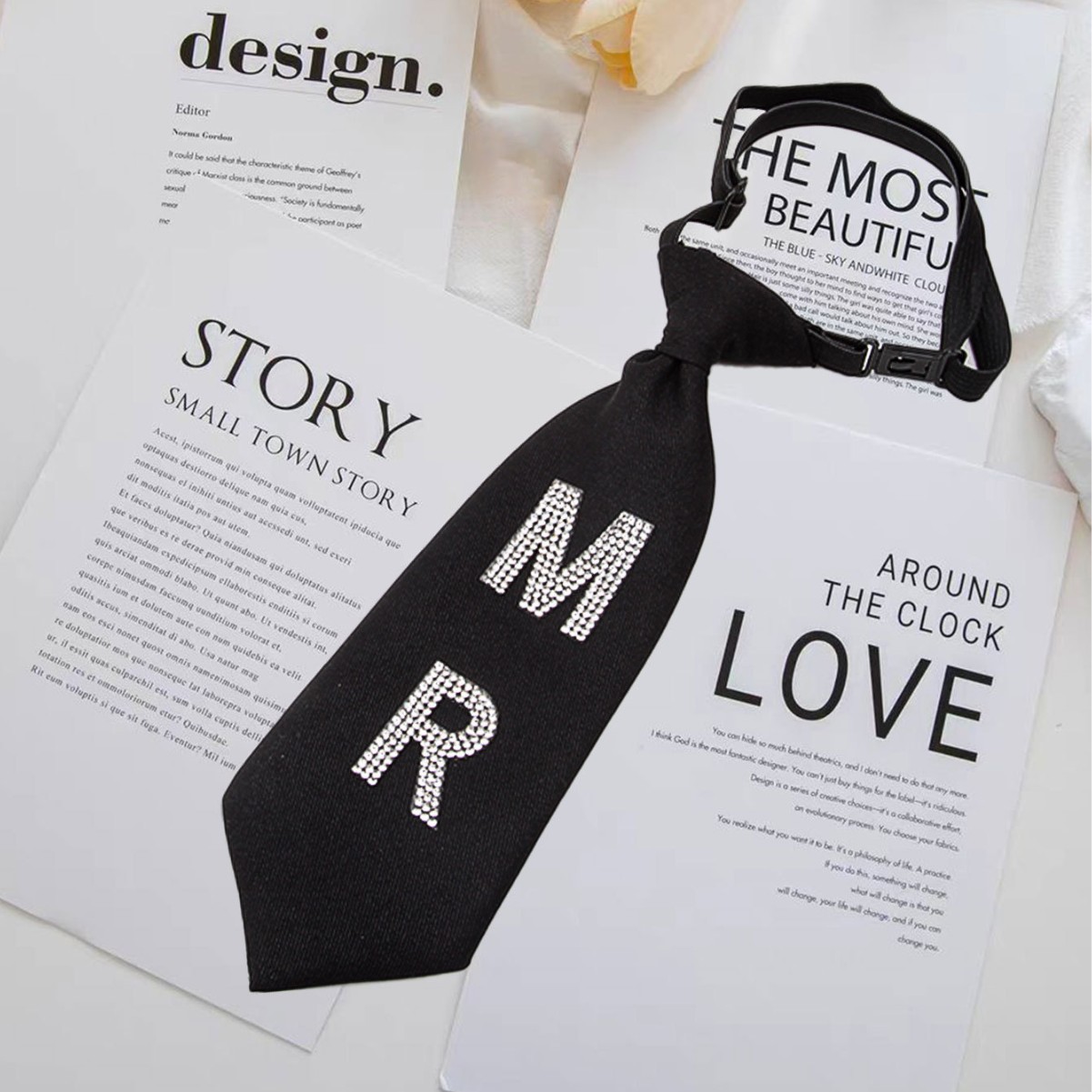 패션 캐주얼 라인스톤 편지 넥타이 남녀 커플 대학 스타일 셔츠 짧은 편지 조정 가능한 넥타이
