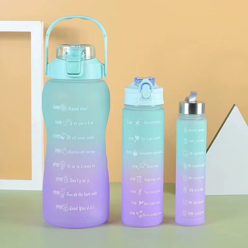 국경 간 폭발 재고 그라디언트 컬러 3 세트 컵 대용량 우주 컵 밀짚 주전자 프로스트 스포츠 휴대용 주전자