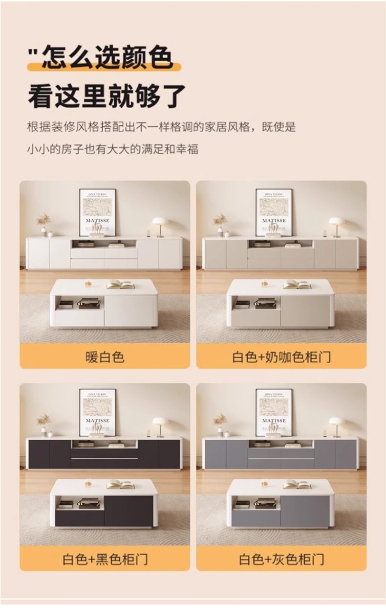 TV 캐비닛 커피 테이블 조합 작은 아파트 거실 흰색 미니멀리스트 바닥 캐비닛 간단한 현대 단단한 나무 바닥 TV 캐비닛스토어 가기