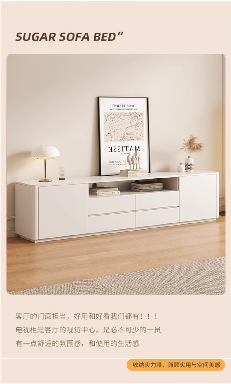 TV 캐비닛 커피 테이블 조합 작은 아파트 거실 흰색 미니멀리스트 바닥 캐비닛 간단한 현대 단단한 나무 바닥 TV 캐비닛