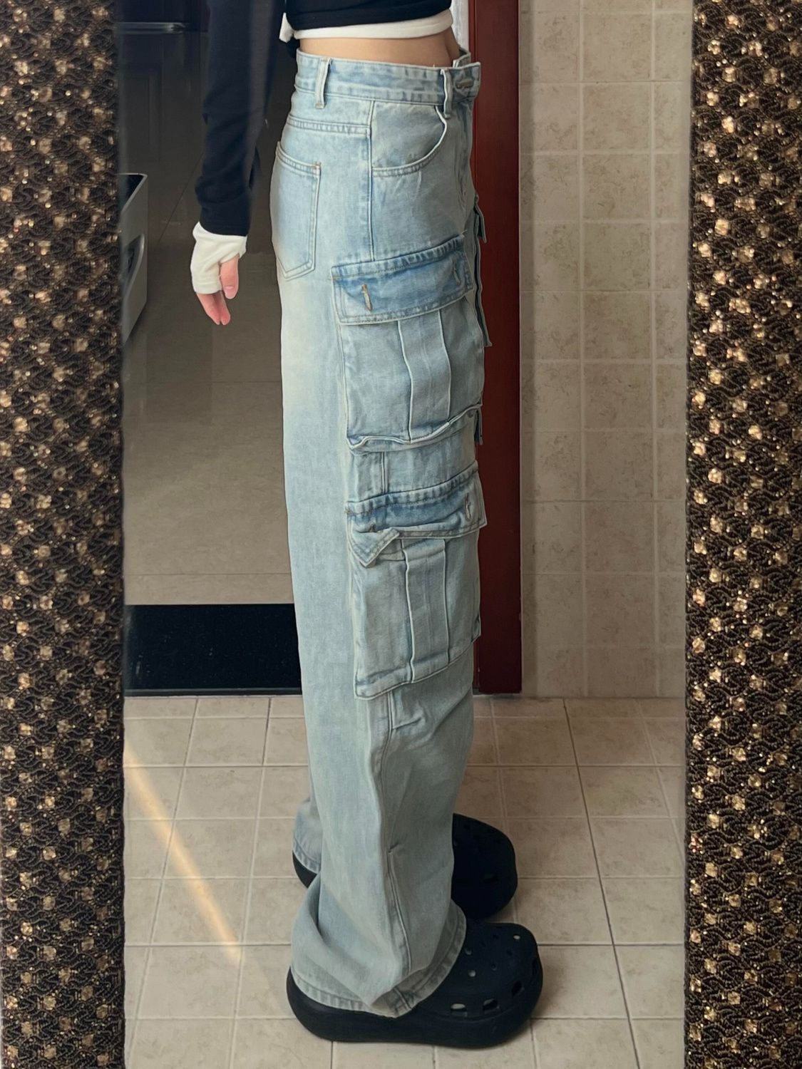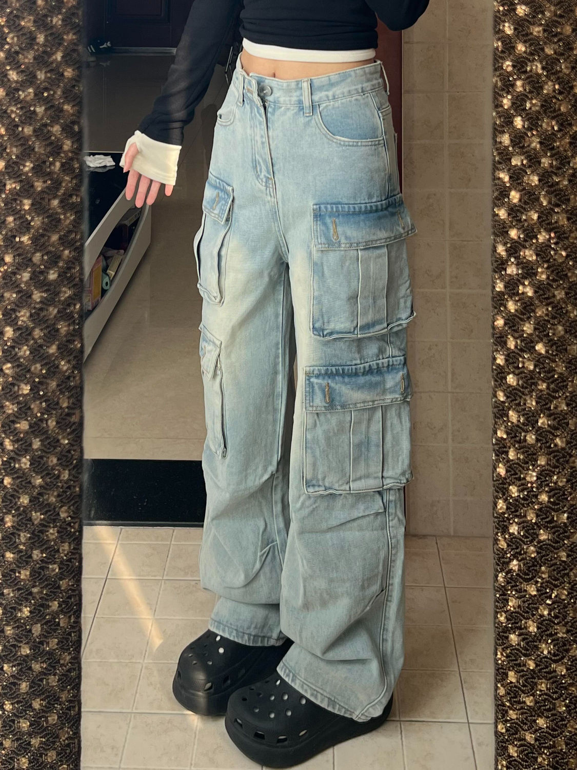 미국 스타일 하이 스트리트 레트로 오래 된 와이드 레그 청바지 2024 새로운 느슨한 높은 허리 세척 포켓 스트레이트 작업복