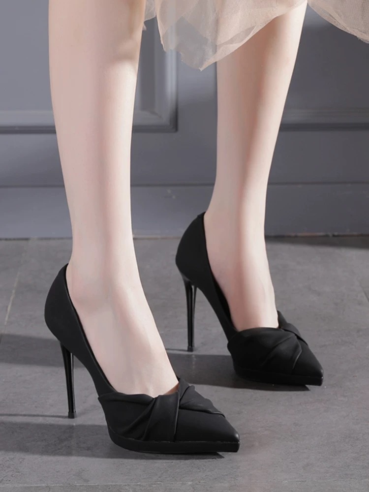 2024 새로운 포인팅 얕은 입 방수 플랫폼 신발 10cm 블랙 하이힐 여성용 스틸레토 힐 올 매치 여성 신발 스몰 사이즈스토어 가기