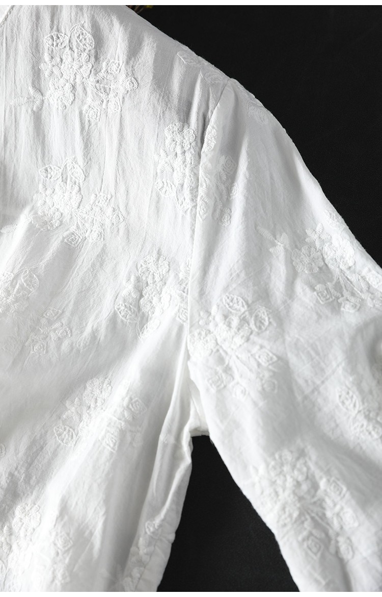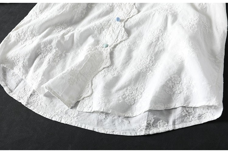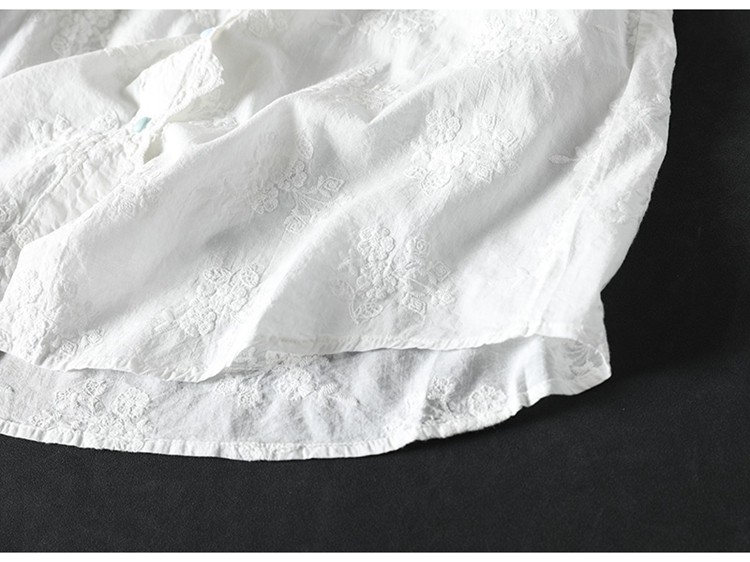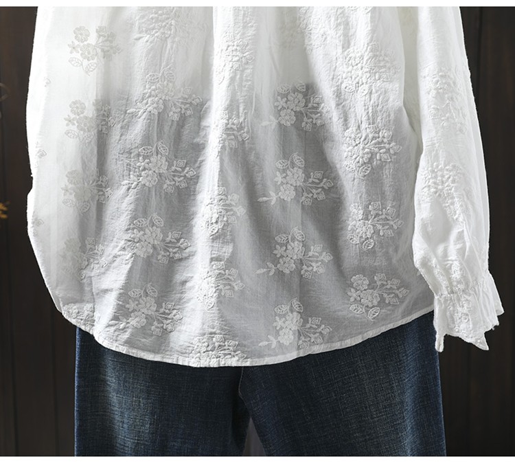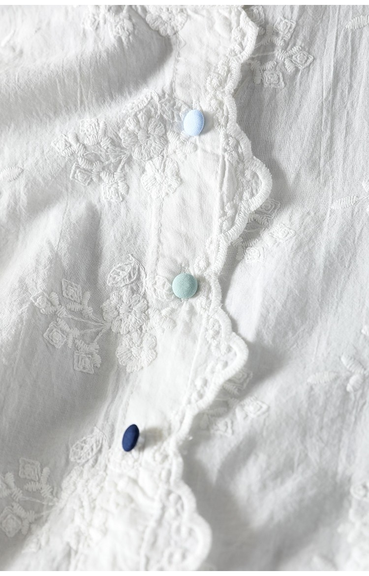 봄 새로운 느슨한 슬리밍 다채로운 버튼 레이스 귀 칼라 자수 코튼 자카드 긴 소매 셔츠 여성용 93016스토어 가기