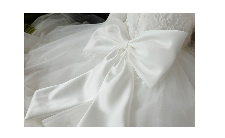 어린이 원피스 공주 원피스 봄과 가을 소녀 푹신한 베일 원피스 꽃 어린이 결혼식 어린 소녀의 생일 원피스 흰색 긴 소매