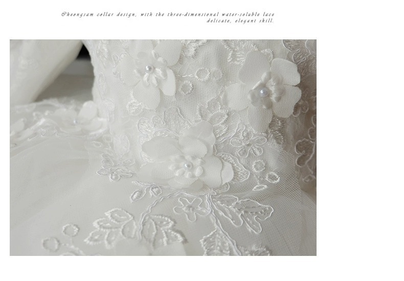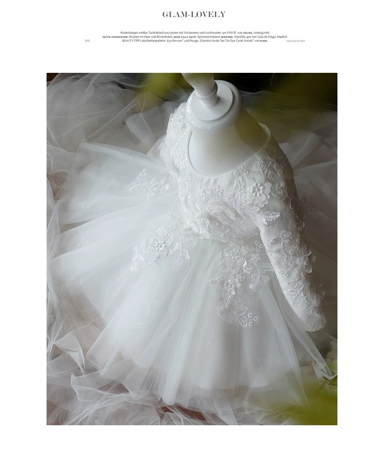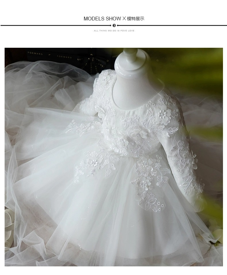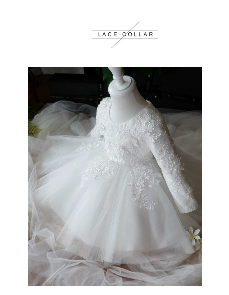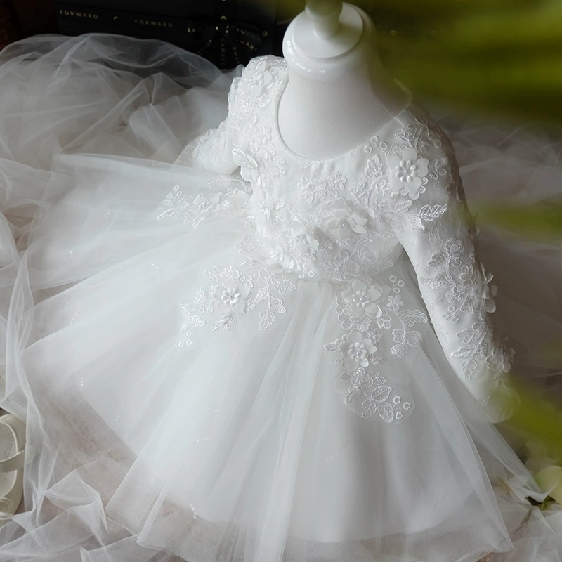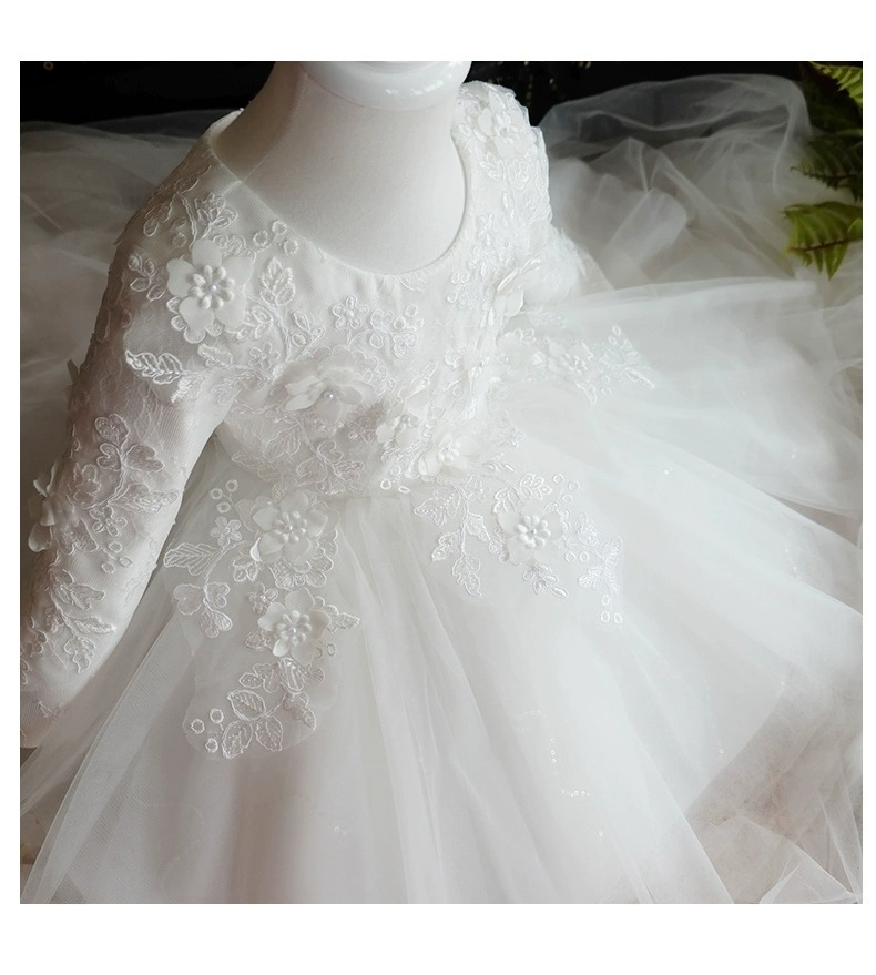 어린이 원피스 공주 원피스 봄과 가을 소녀 푹신한 베일 원피스 꽃 어린이 결혼식 어린 소녀의 생일 원피스 흰색 긴 소매스토어 가기