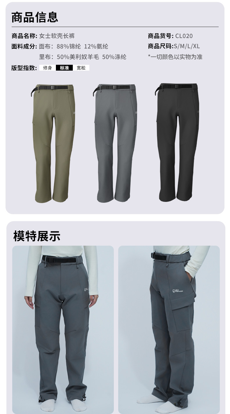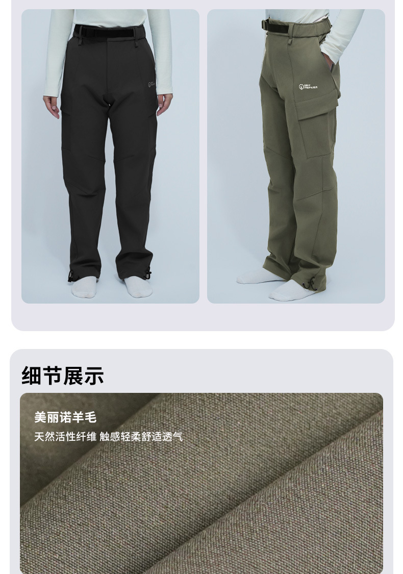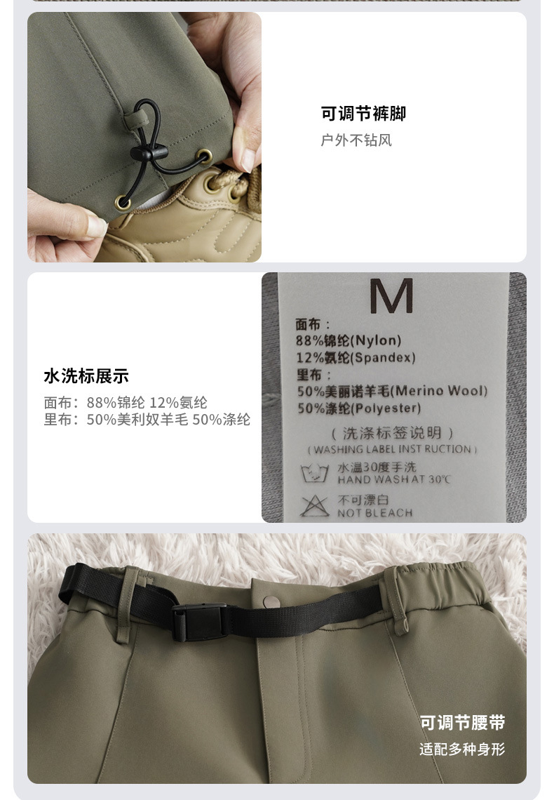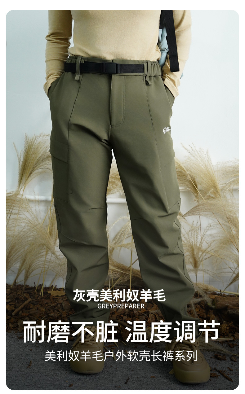 야외 메리노 울 남녀 소프트 쉘 바지 가을과 겨울 복합 양모 바지 야외 사이클링 방풍 방지 스플래시 바지스토어 가기