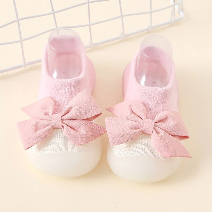봄과 여름용 아기 여아용 리본 장식 공주풍 실내외 미끄럼 방지 및 충돌 방지 유아용 신발 및 양말 통기성 신발스토어 가기