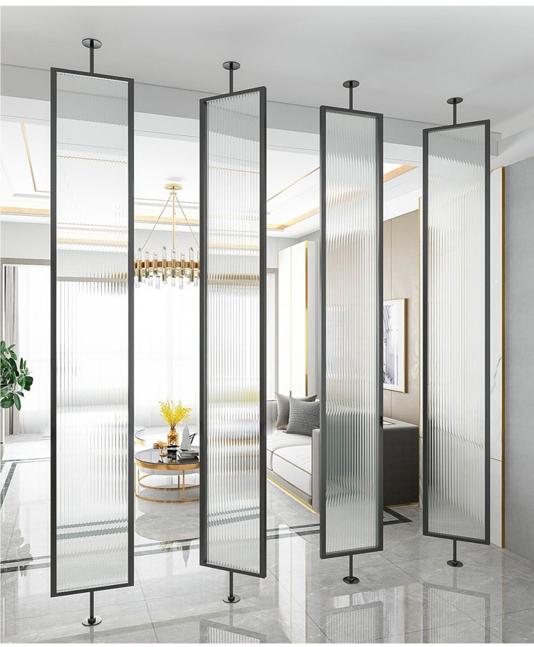 북유럽 엔트리 럭셔리 스테인레스 스틸 창홍 아트 유리 파티션 홈 스크린 게스트 레스토랑 복도 그늘진 철 장식