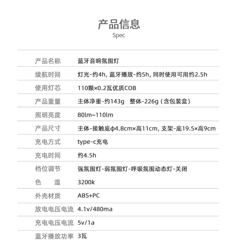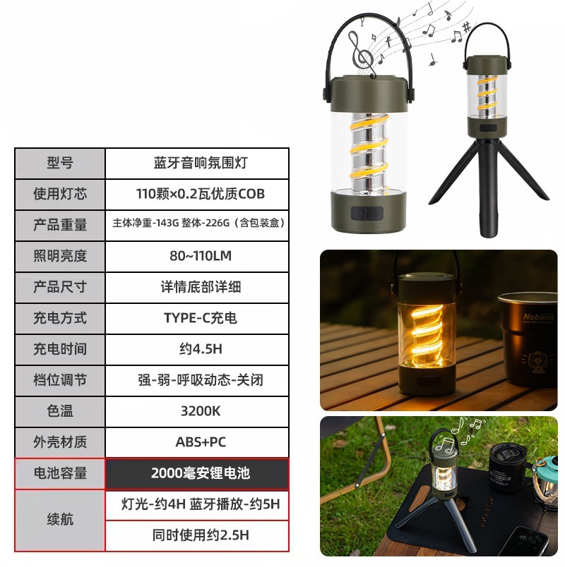 야외 오디오 캠핑 분위기 조명 블루투스 무선 스피커 피크닉 바베큐 낚시 텐트 조명